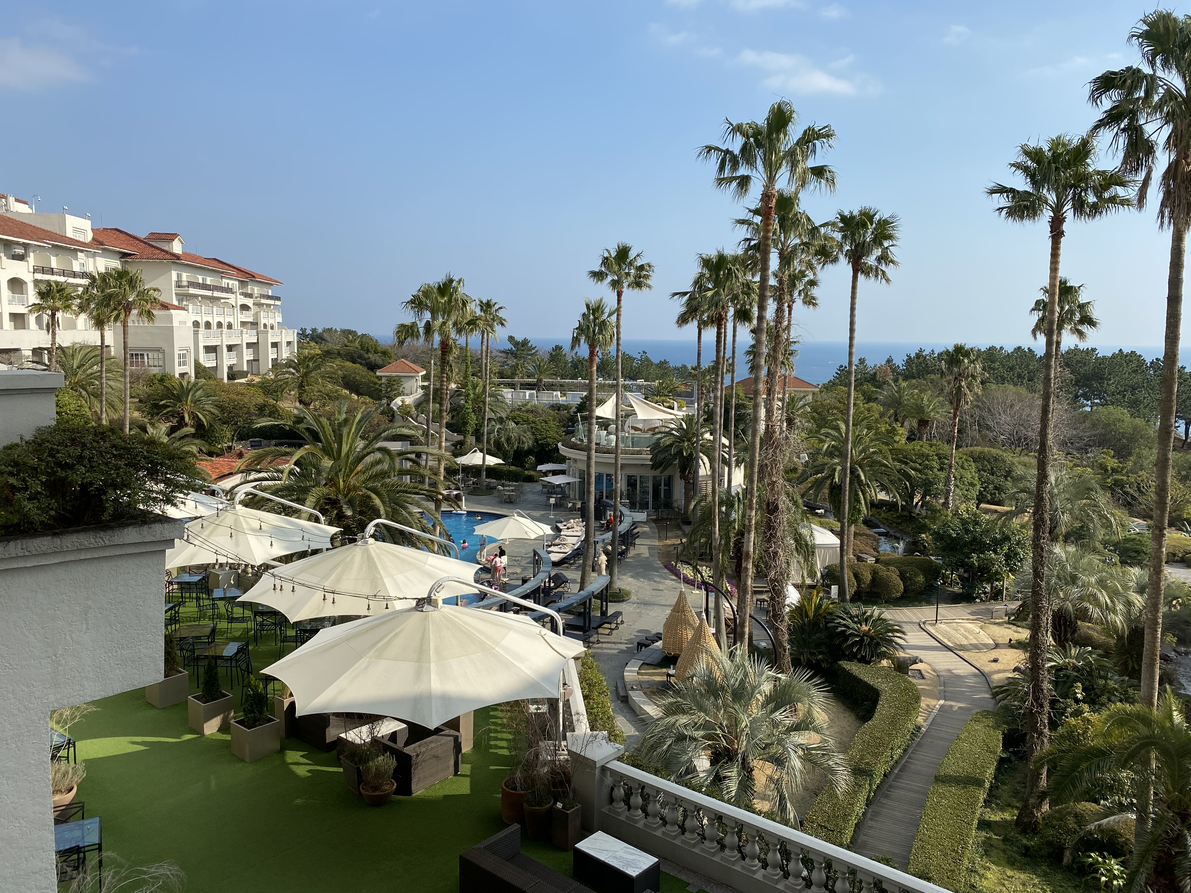 내 방 테라스에서 만나는 밖의 모습. 산책로가 있긴 한데 사람도 많지 않고 조용하고 그렇다. 여기 산책로도 따로 포스팅한 적이 있긴 한데 꽤 넓고 예쁘게 잘 꾸며두어서 정말 걸을만 하다. 천천히 걸으면 30분에서 1시간 정도가 걸리는데 정말 1박 일정을 온전히 제주 신라호텔 호캉스에 다 써도 짧게 느껴지실 것이다. 내가 그랬다. 헬스장도 가볍게 이용해 보고 수영도 하고 밥도 먹고 그랬는데 정말 하루가 너무 짧았다. 다음날 조식까지 먹었는데도! 아무튼 뭐 그렇다. 여기 조식도 정말 대박적으로 좋은데. 아무튼 이왕 오실 거면 큰 마음먹고 풀로 다 놀겠다는 마음으로 오시는 것이 좋겠다. 여긴 그래야 하는 곳이다. 뭔가 어설프면 한 번을 더 모아 다음에 오겠다는 마인드로 접근해야 한달까. 내가 그랬다. 그래서 지금도 아껴두고 있다. 무조건 여길 다시 갈 것이기 때문에! 이 테라스에서 조용히 햇살도 즐기고 바람도 즐기고 멍 때려도 충분히 좋다. 같이 온 일행과 맥주 한잔하며 수다를 떨어도 좋고!
