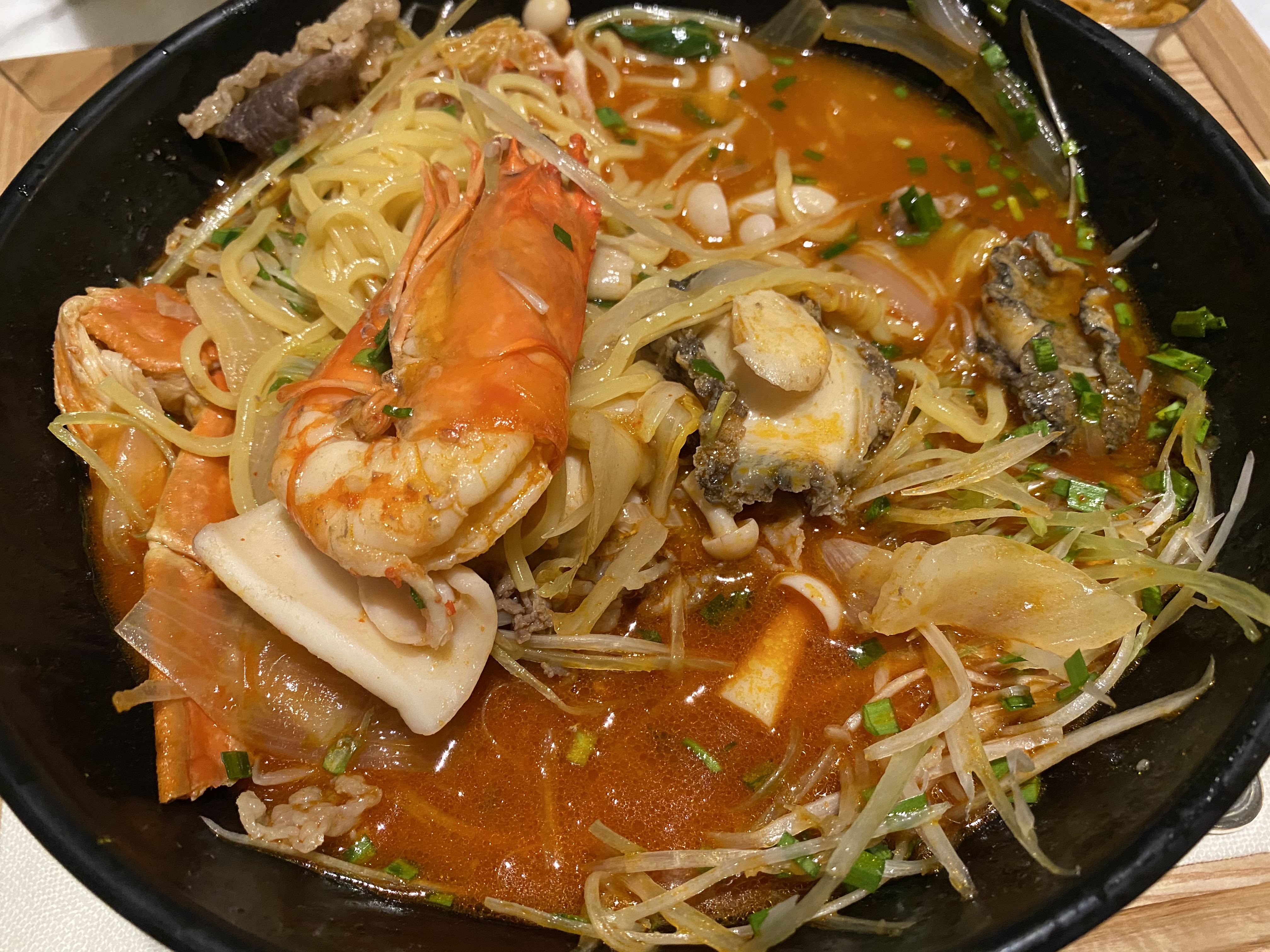 노을이 져가는 제주 신라호텔 뷰의 모습! 그리고 꼭 먹어봐야 하는 해물짬뽕이다. 이 해물짬뽕만 먹기 위해 오는 사람들도 있다고 한다. 내가 본 것이 아니라 친구가 알려주었다. 친구한테 내가 여기에 갈 예정이라고 하니 이걸 꼭 먹어보라고 알려주었다. 그리고 이렇게 먹어봤는데 안 먹어봤으면 후회할 뻔했다. 일단 가격이 엄청 비싼데 절대 혼자 먹을 양이 아니다. 둘이 나눠 먹으라고 이런 금액에 파는 것이었다. 2인으로 나눌 경우 그렇게 비싼 금액도 아니다. 혼자 먹기엔 비싼데 말이다. 앞서 말한 것처럼 이 해물짬뽕 관련하연 포스팅을 이미 해두었으니 참고해보시면 좋겠다. 정말 해산물 밭처럼 이것저것 다 들어있었다. 퀄리티와 맛, 비쥬얼 모두 다 좋았다. 싱싱하고! 그리고 앞에도 말했지만 조식 역시 너무 훌륭하여도. 종류도 많고 퀄리티도 괜찮고! 물론 가격이 비싸긴 한데 정말 그 값을 한다. 아이스커피가 없다는 것이 아쉽긴 했지만 말이다.