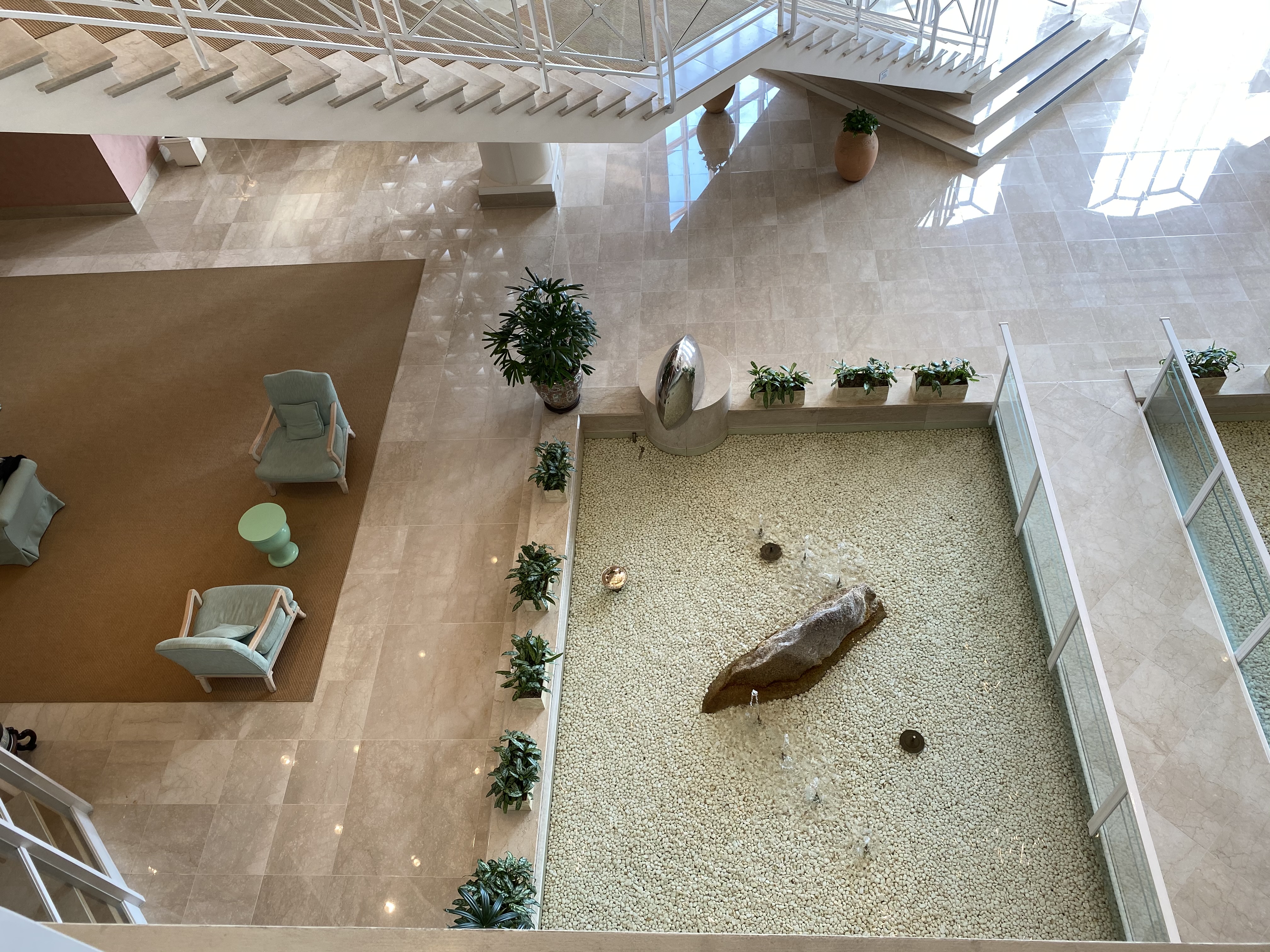 아직 방은 구경도 못했다. 아래층의 경우 조식을 먹으러 이동하는 공간인데 여기서도 위 카페 라이브가 들려오고 아래에선 또 다른 문화 공간도 있고 그렇다. 앉아서 쉴 곳도 있고! 그리고 옷 가게 같은 곳도 있었는데 별로 구경할 생각은 들지 않았고 이 그림만 신기하고 멋있어서 좀 봤던 기억이 난다. 그리고 방으로 가는 순간에도 엘리베이터에서 나오면 이렇게 예쁜 공간들이 있다. 사진을 정말 안 찍을래야 안 찍을 수가 없다. 뭔가 개인 테라스 느낌이 난단 말이지. 진짜 사진으로 봐도 예쁘지만 실제로 보면 더 좋다. 뭔가 내가 굉장히 신나하고 오바했던 기억이 난다. 뭔가 세상 밖으로 처음 나온 사람처럼 말이다. 근데 평소 애정 하던 회사를 이렇게 실질적으로 제대로 처음 경험하니 더 그랬던 것 같다. 오늘 투숙기를 그냥 한 줄로 정리하자면 조식, 수영장, 방 컨디션, 뷰 등 묵었던 호텔 중에 원탑이었다고 감히 말하고 싶다. 하루가 너무 아까웠고 다음에 오면 무조건 연박을 해야겠다 싶었다. 근데 그만큼 재정상황이 받쳐줘야 하는 것이겠지만!