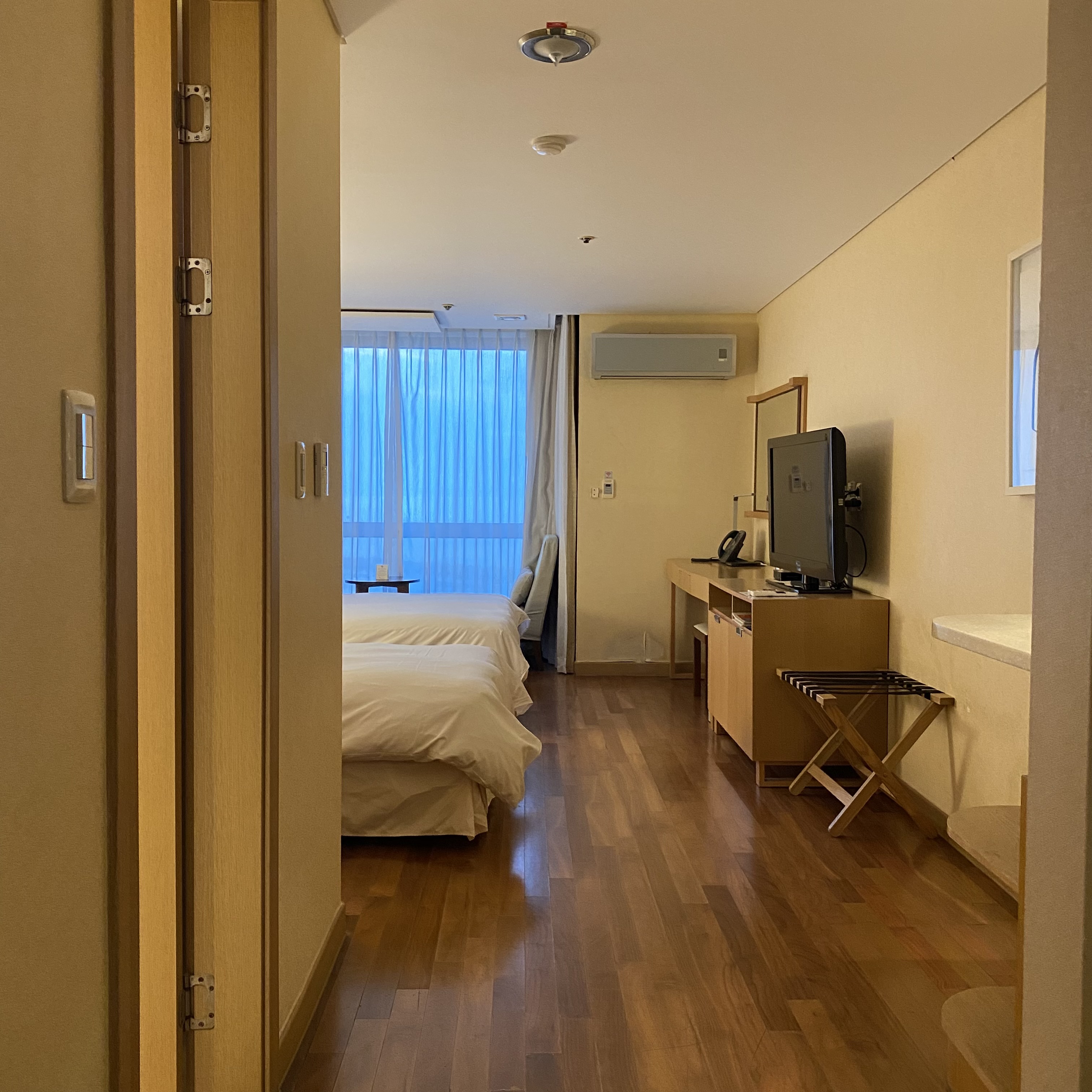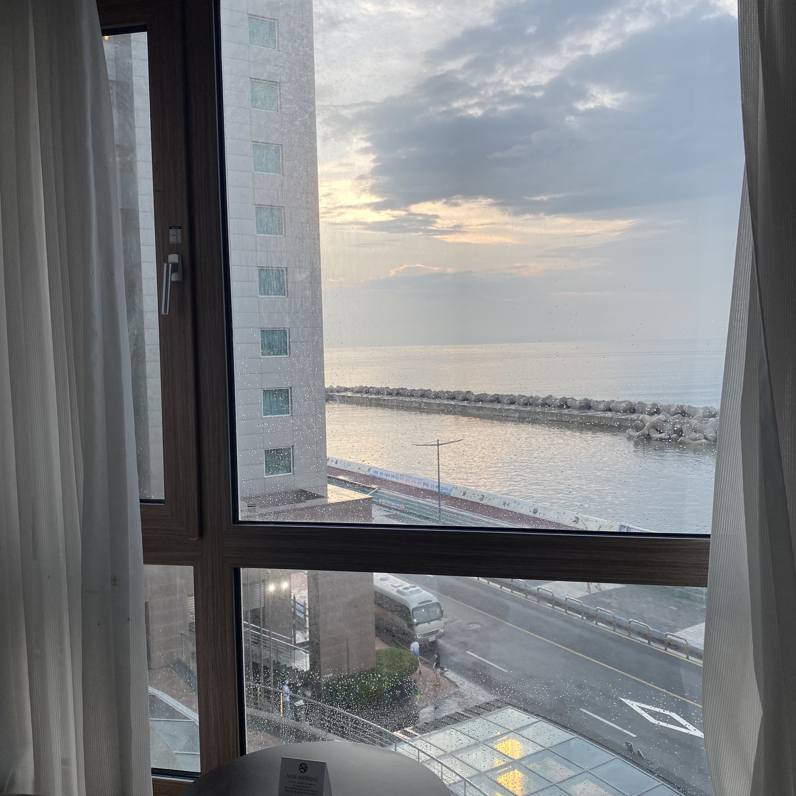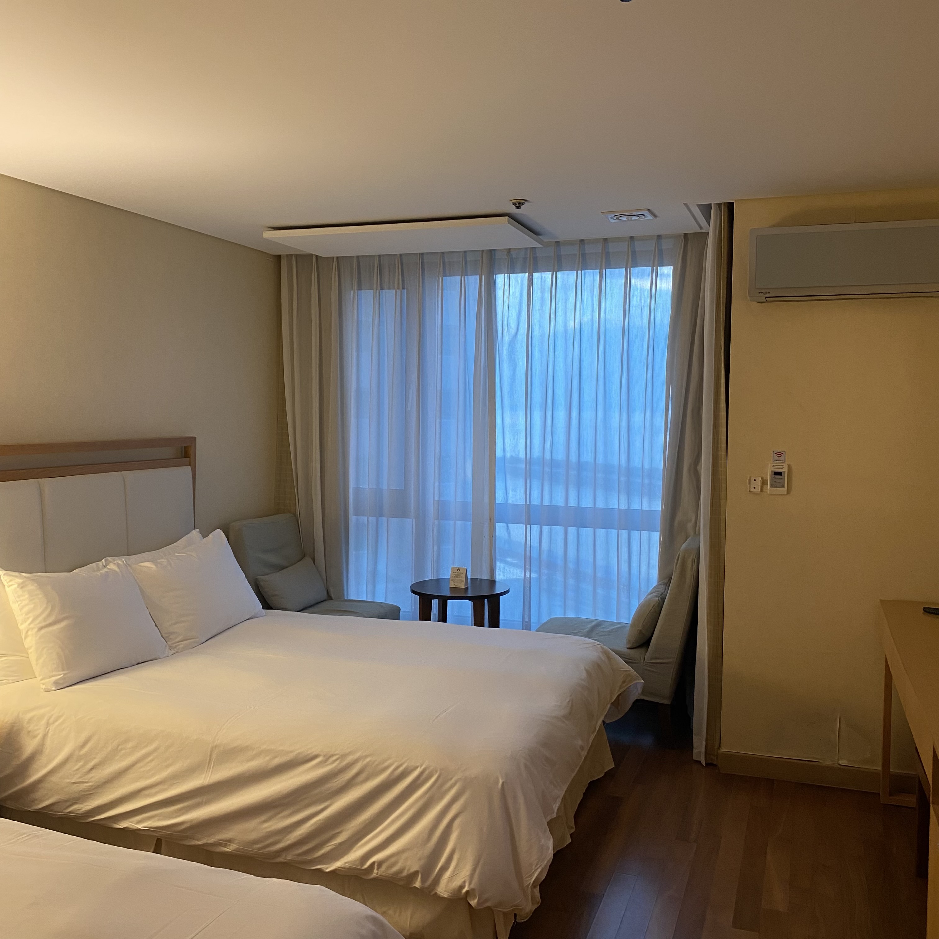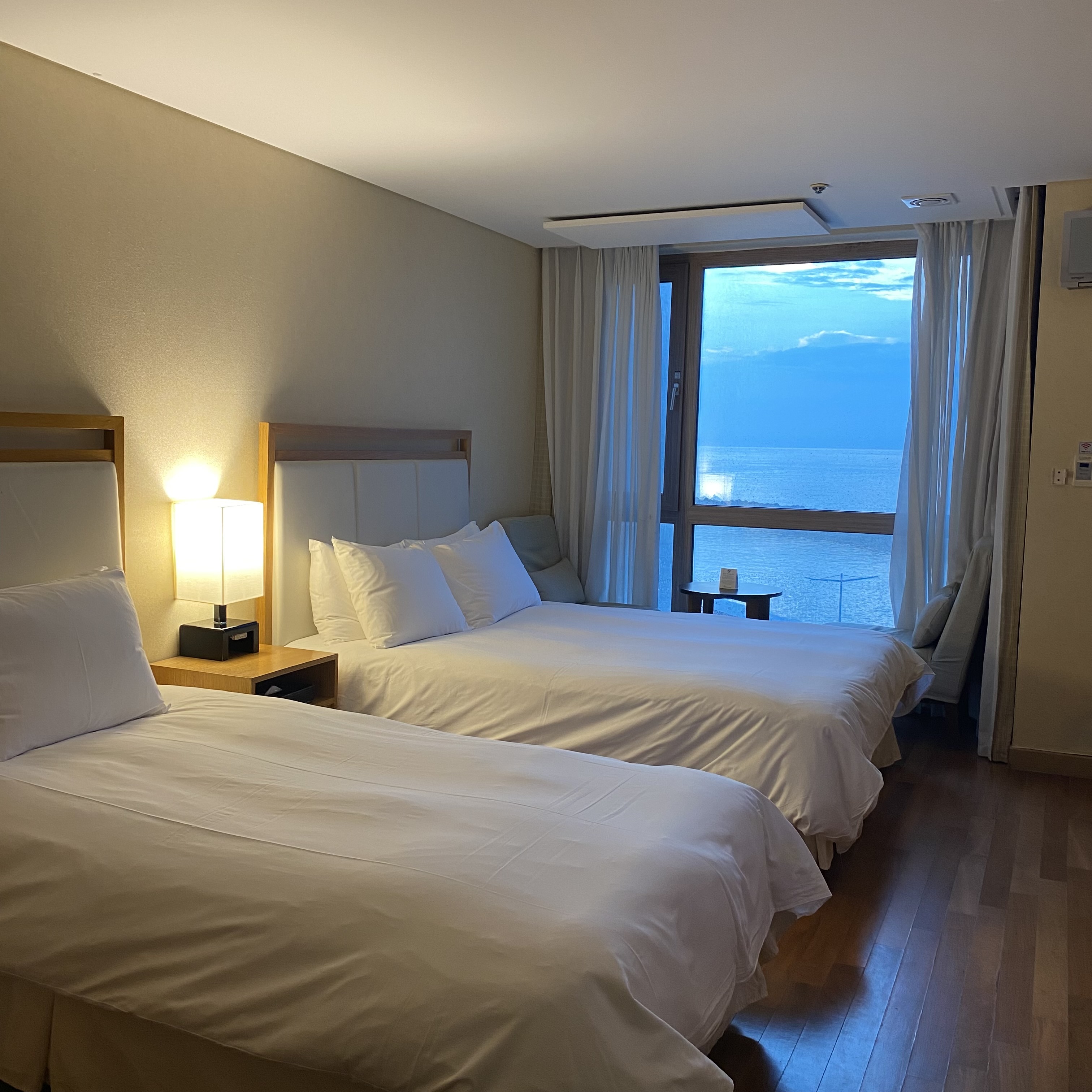 방 안에서도 바다가 보여 뷰는 나름 괜찮았다. 근데 막 누워서 그냥 tv를 보다가 바다도 보고 그런 게 가능한 구조는 아니어서 아쉽긴 했다. 뭔가 구석에 있기도 하고. 솔직히 내가 만약 찾아서 왔으면 여길 왔을까 싶다. 일단 공항 근처라 장소적인 제한도 있고 한데 누군가에겐 여기가 또 필요할 수도 있어서 상대적인 것 같다. 근데 여기 아무래도 공항과 가깝다 보니 항공사들과 제휴를 맺고 숙박을 하는 것 같았다. 유니폼을 입고 체크인을 하는 사람들을 종종 볼 수 있었다. 그리고 호텔에 대해 조금 더 이야기를 해보자면, 살짝 오래되긴 했어도 4성급을 유지하고 있기 때문에 기본적인 것들은 다 괜찮았다. 위생 상태도 그렇고 말이다. 저렴하진 않았지만 그 기대에 부응해서 괜찮았다.