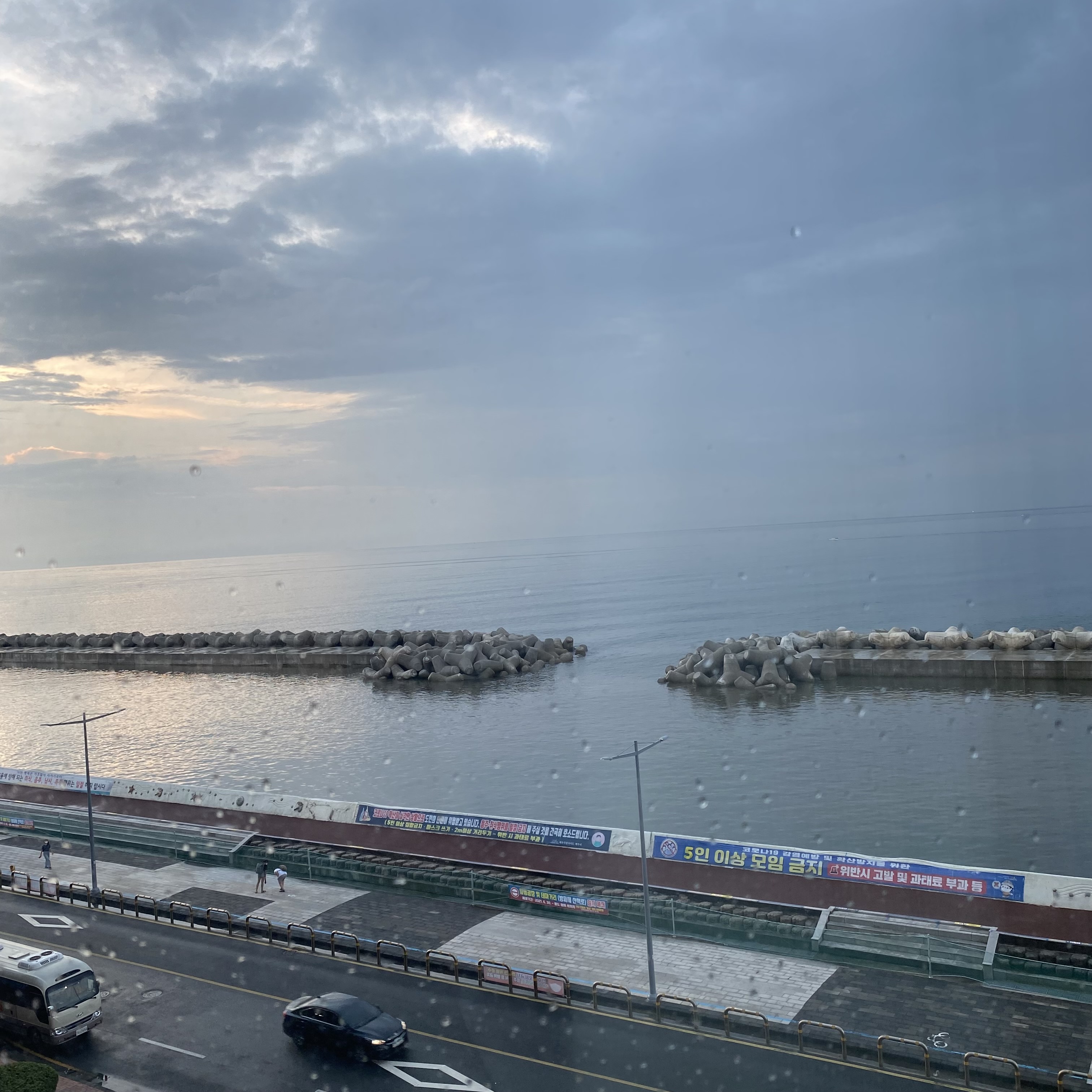 원래 여기가 아니라 처음 오려고 했던 오리엔탈호텔의 경우 안 묵어봐서 어떨진 정확히 잘 모르겠다. 근데 바로 이 근처라 돌아다니면서 봐봤는데 그 경험을 토대로 보면 제주 오션스위츠호텔이 위치도 좋고 외관이 더 깔끔해 보이긴 했다. 아무래도 오션뷰라 바다도 보이고! 사진에서 보이는 것처럼 바로 앞에 바다가 있다. 바다로 가기 전에 방파제가 먼저 보이는데 원래 여기서 회를 사다가 술도 먹고 바다 뷰도 즐기고 한다는데 현재는 상황상 그런 것들이 통제되고 있었다. 그런 분위기를 본다는 것만으로도 여행 온 기분이 들고 힐링이 되는 경우가 있는데 그러지 못해 좀 아쉽긴 했다.