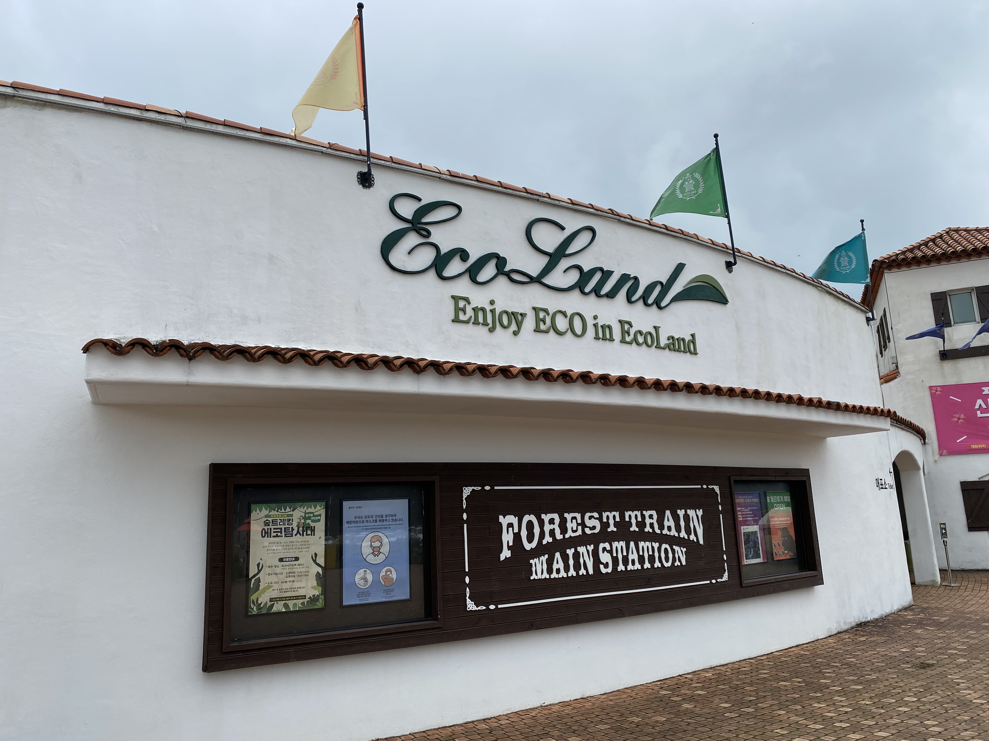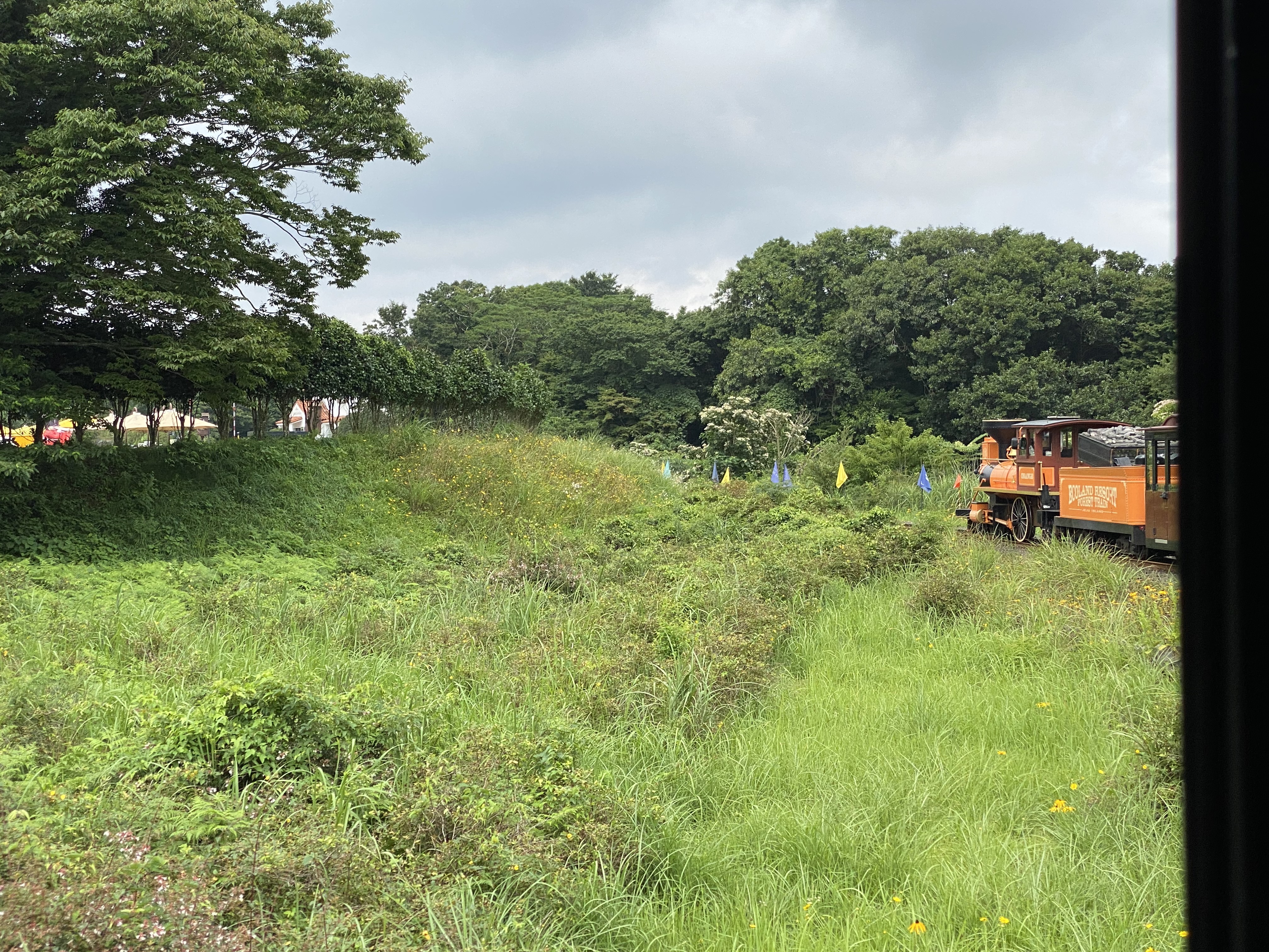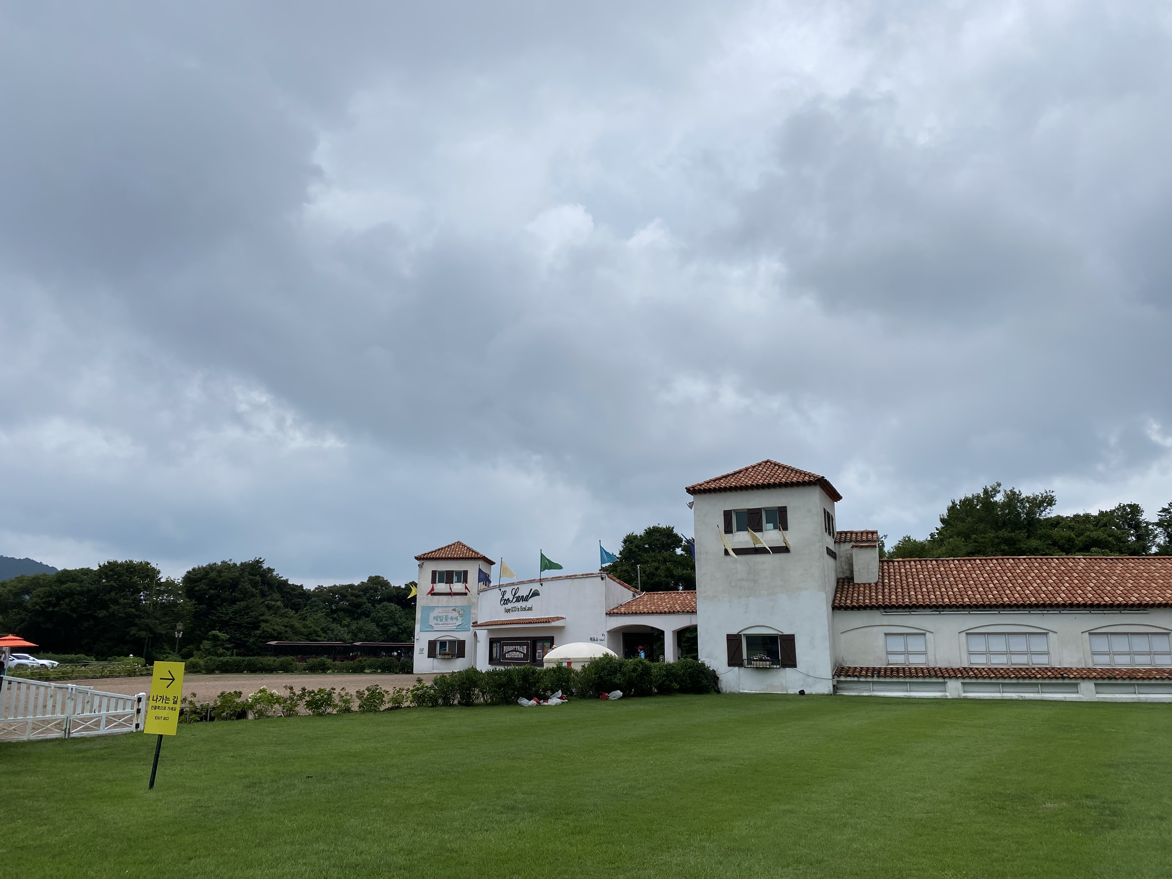 그리고 여기 호수 너머 어떤 호텔 리조트 같은 곳이 보였다. 식당은 아닌 것 같고 이름까지 확인은 못했는데 저기서 자기도 하는구나 싶었다. 그리고 뷰가 너무 괜찮겠다는 생각이 들었다. 고층은 아니지만 그래도 여기 장소 자체가 한적하고 조용하고 잔잔하달까. 편하게 쉬기엔 딱 좋은 위치라는 생각이 들었다. 이럴 거면 이름이라도 알아보고 올걸 그랬나? 뭐 검색하면 바로 나오긴 하겠지만! 아무튼 그렇게 계속해서 걸었다. 중간중간 기차여행 잊지 않고 말이다. 그리고 나름 한 곳을 계속 둘러보는 것이 아니라 에코랜드 테마파크 별로 나뉘어 보니까 지루함도 딱히 크지 않았다. 뭐 여행 자체가 행복한 것이긴 하니까!