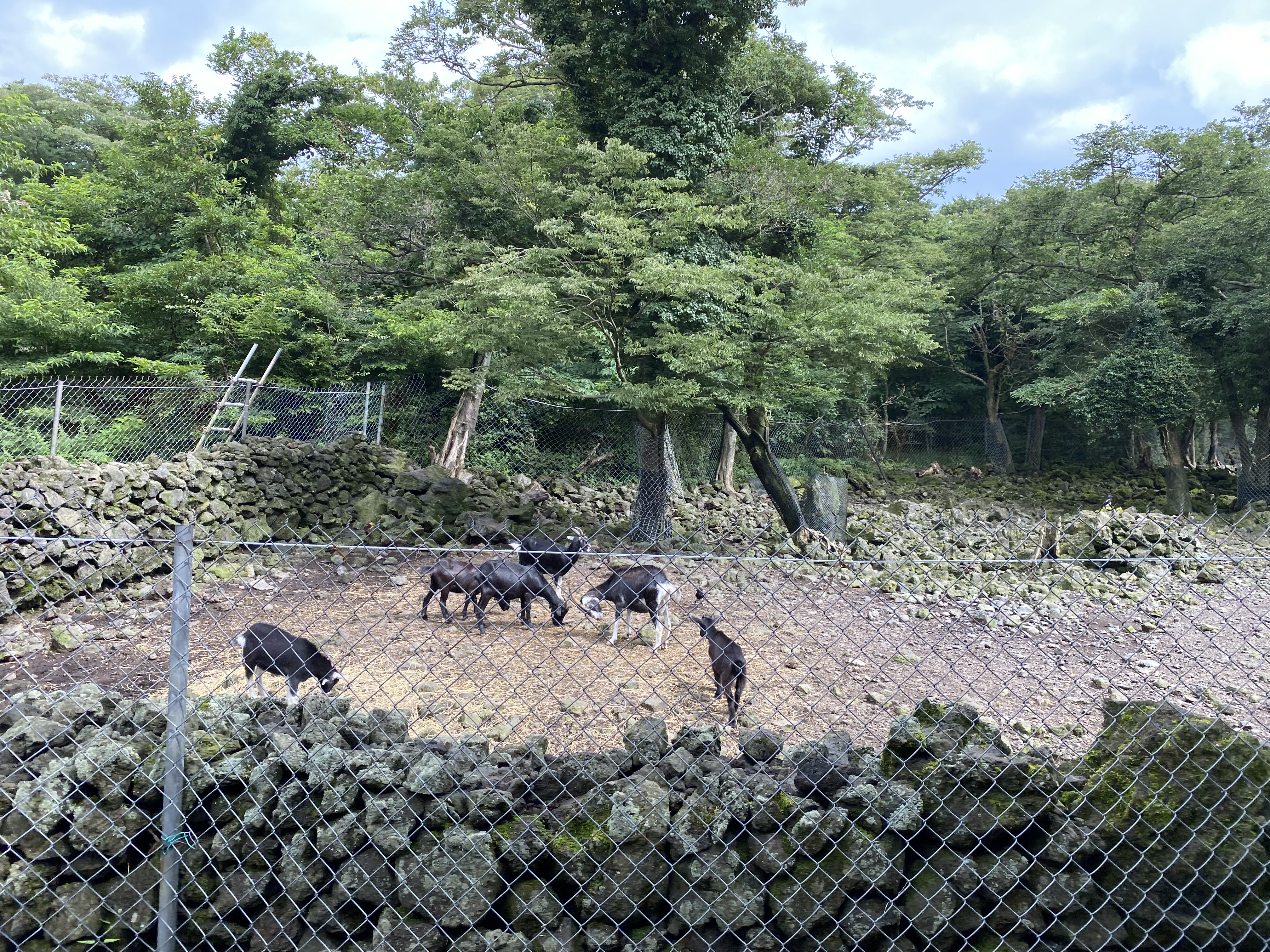 그리고 추울 때는 몰라도 날이 더울 때 이렇게 탑승할 수 있는 이동수단이 있다는 것은 굉장히 편한 요소이다. 물론 여기에 창문이 다 뚫려있는 구조라 에어컨이 나오는 것도 아니고 그렇긴 하지만, 이 공간 자체의 초록초록함이 주는 시원함과 나름의 속도를 통해 달려오는 바람들이 주는 시원함이 있다. 그 기분들이 좋았다. 나름 이색적으로 사진도 찍을 수 있고. 그리고 이렇게 염소 가족도 만날 수 있었다. 얘네들 어떻게 관리하시는 것이지? 여기에 근무하시는 분들도 인원수가 어느 정도 되겠다 싶다.