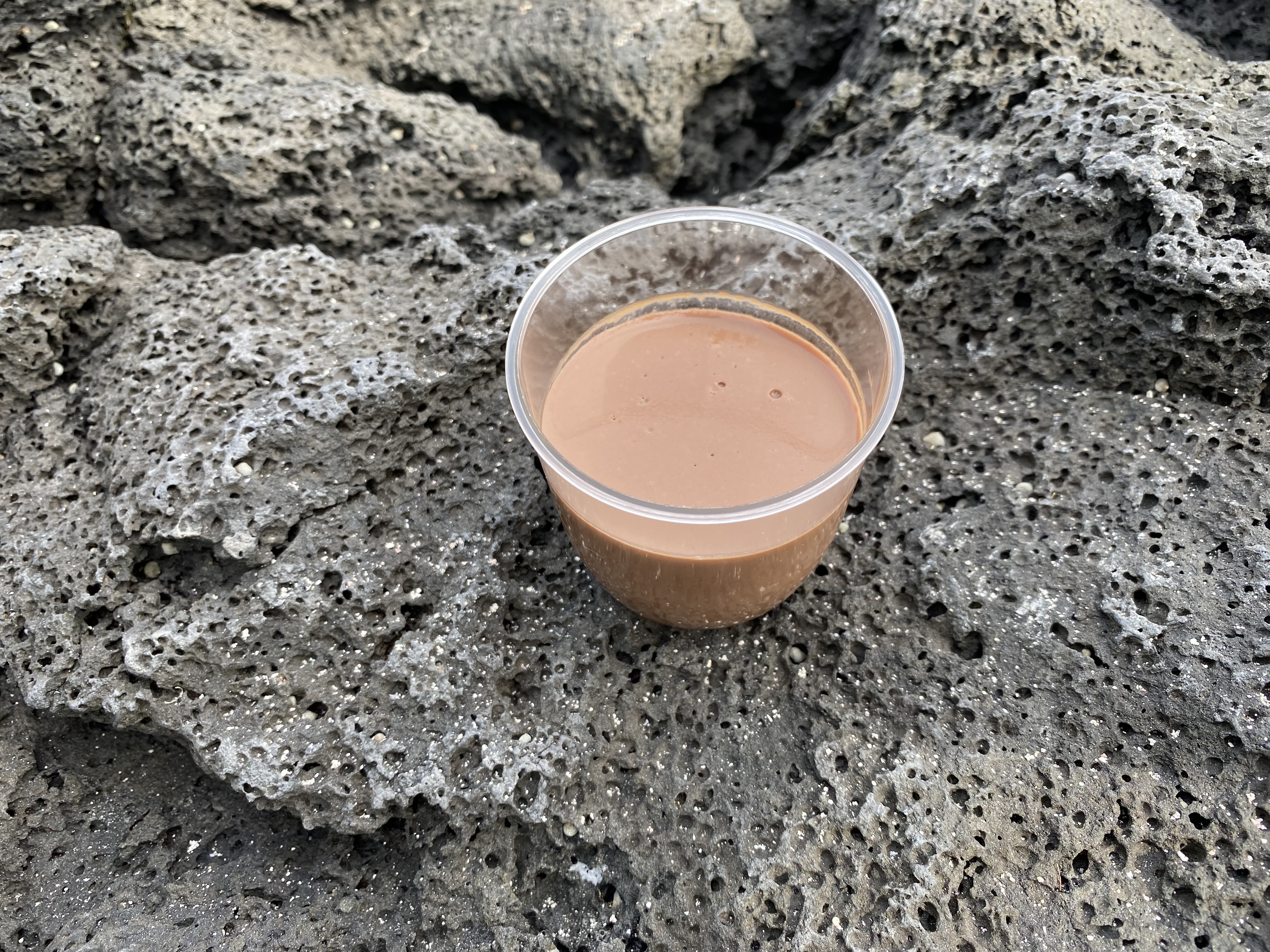 살 때 사장님께서 이게 최대한 빨리 먹어야 한다고 말씀 해주신다. 특히나 요즘처럼 날이 더울 경우 더 녹기가 쉬우니 아마 더 강조해주시지 않을까 싶다. 처음엔 그 의미를 잘 몰랐다. 그냥 30분 이내에 먹으면 괜찮겠지 싶었다. 근데 아니었다. 이때의 날씨가 지금처럼 덥지 않았음에도 불구하고 벌써 녹았더라. 일부분이 녹으니 그 푸딩만의 탱글탱글함이 사라졌다. 그리고 애초에 좀 시원하게 먹어야 그 맛이 사는 디저트였다. 흐물흐물해서 그 모양이 깨지고 좀 차가운 느낌이 사라지니 맛이 확 떨어졌다. 아마 내가 그 맛을 별로 안 좋아해서 그럴 수도 있겠는데 아무튼 개인적으로 그냥 맛이 확 떨어졌다. 다행히 차갑게 유지되고 있는 종류가 있어서 먹어봤는데 그건 정말 맛있었다. 근데 아마 그게 위 사진의 초코맛이었던 것으로 기억한다.