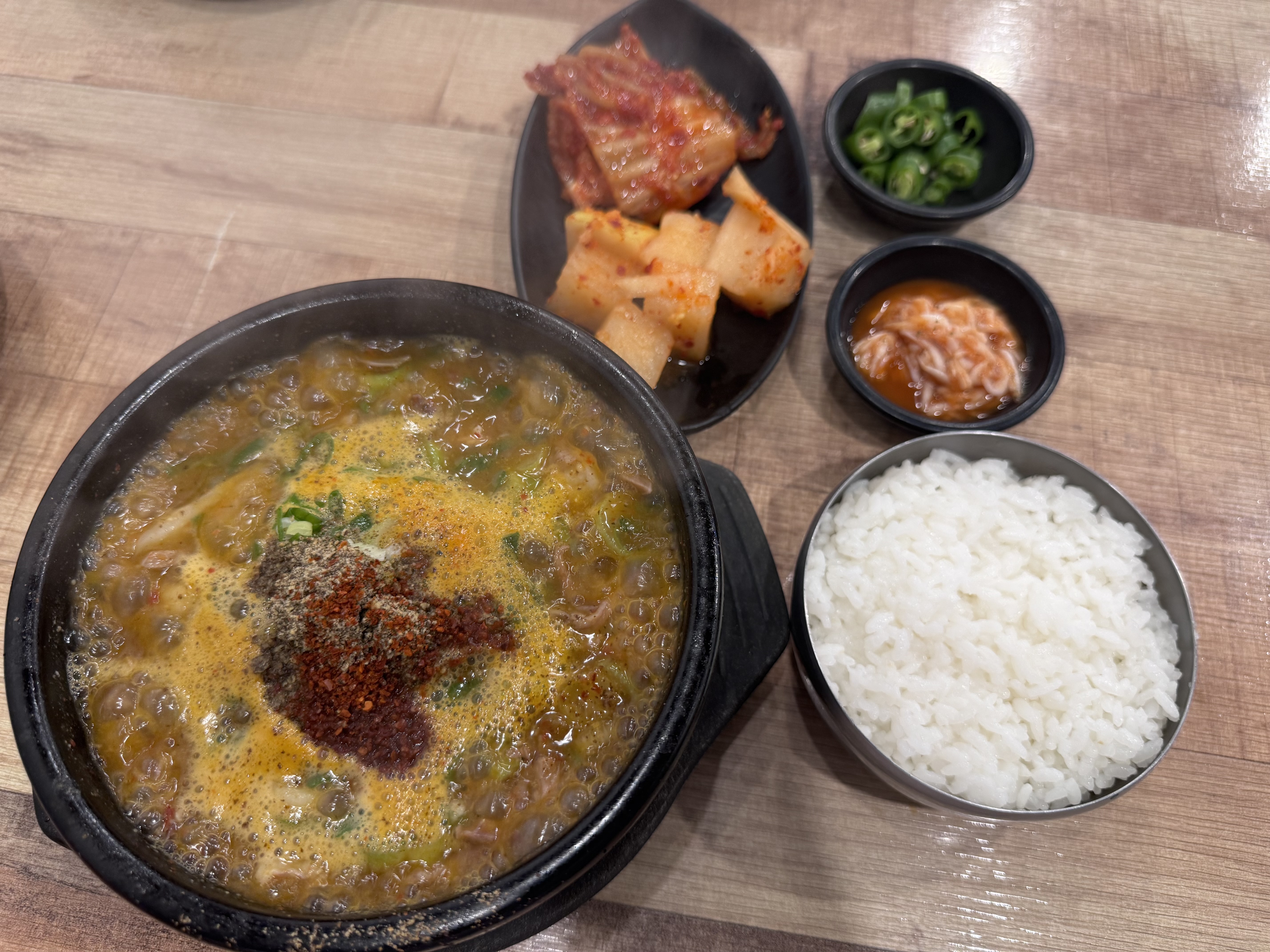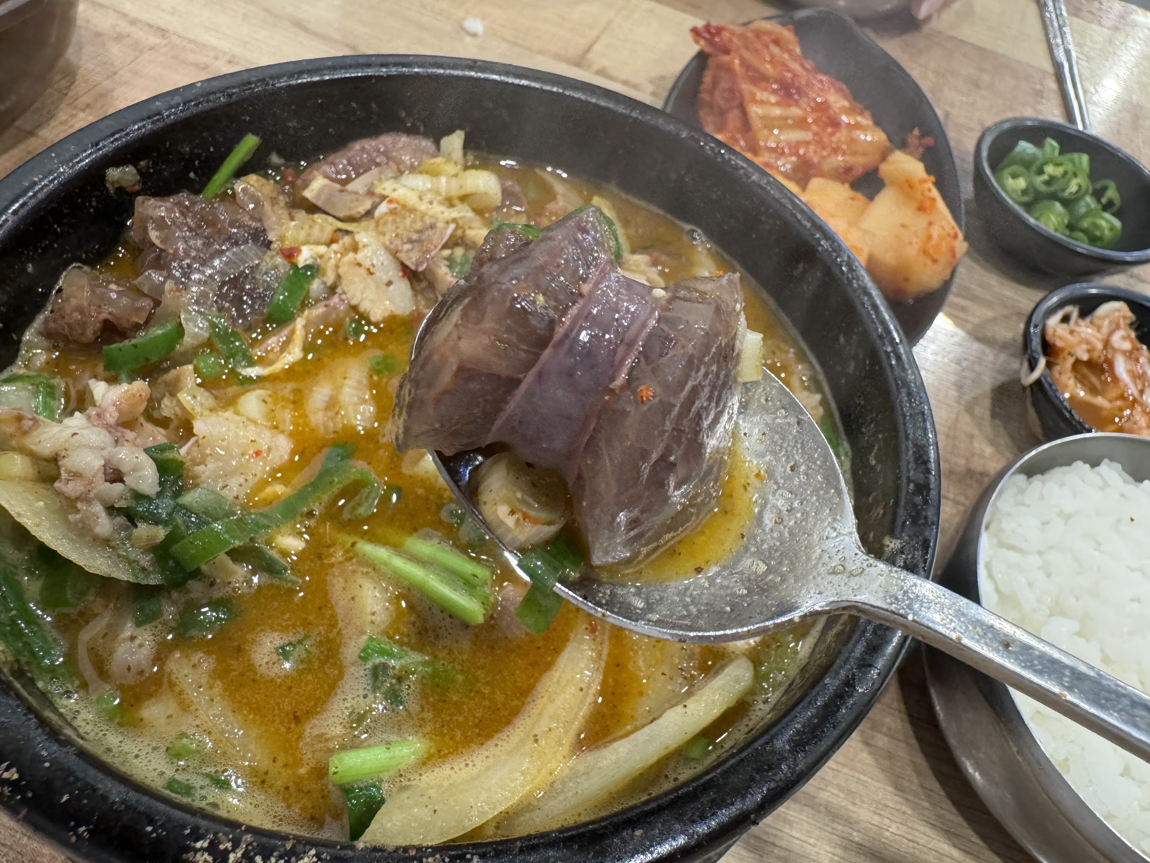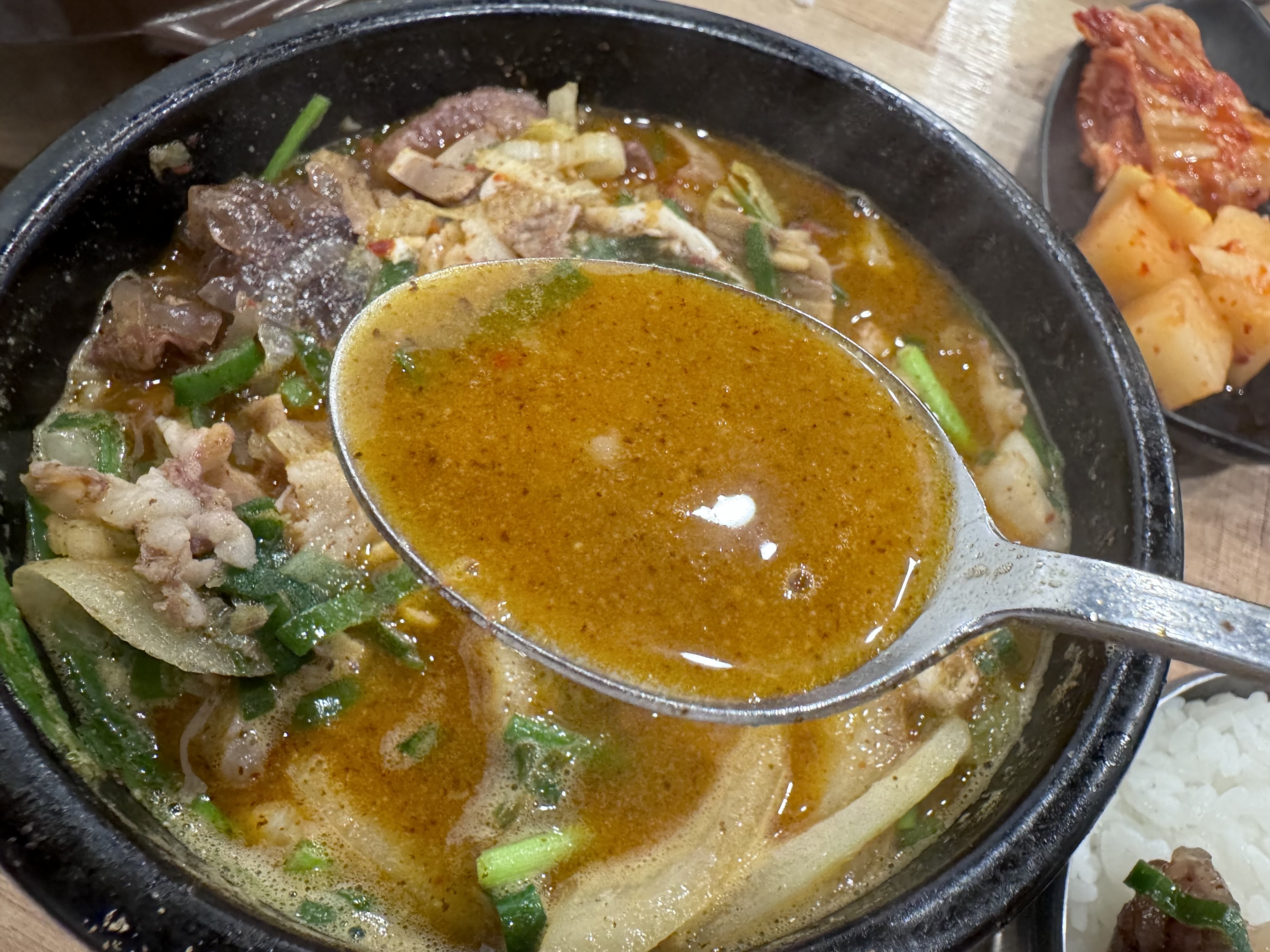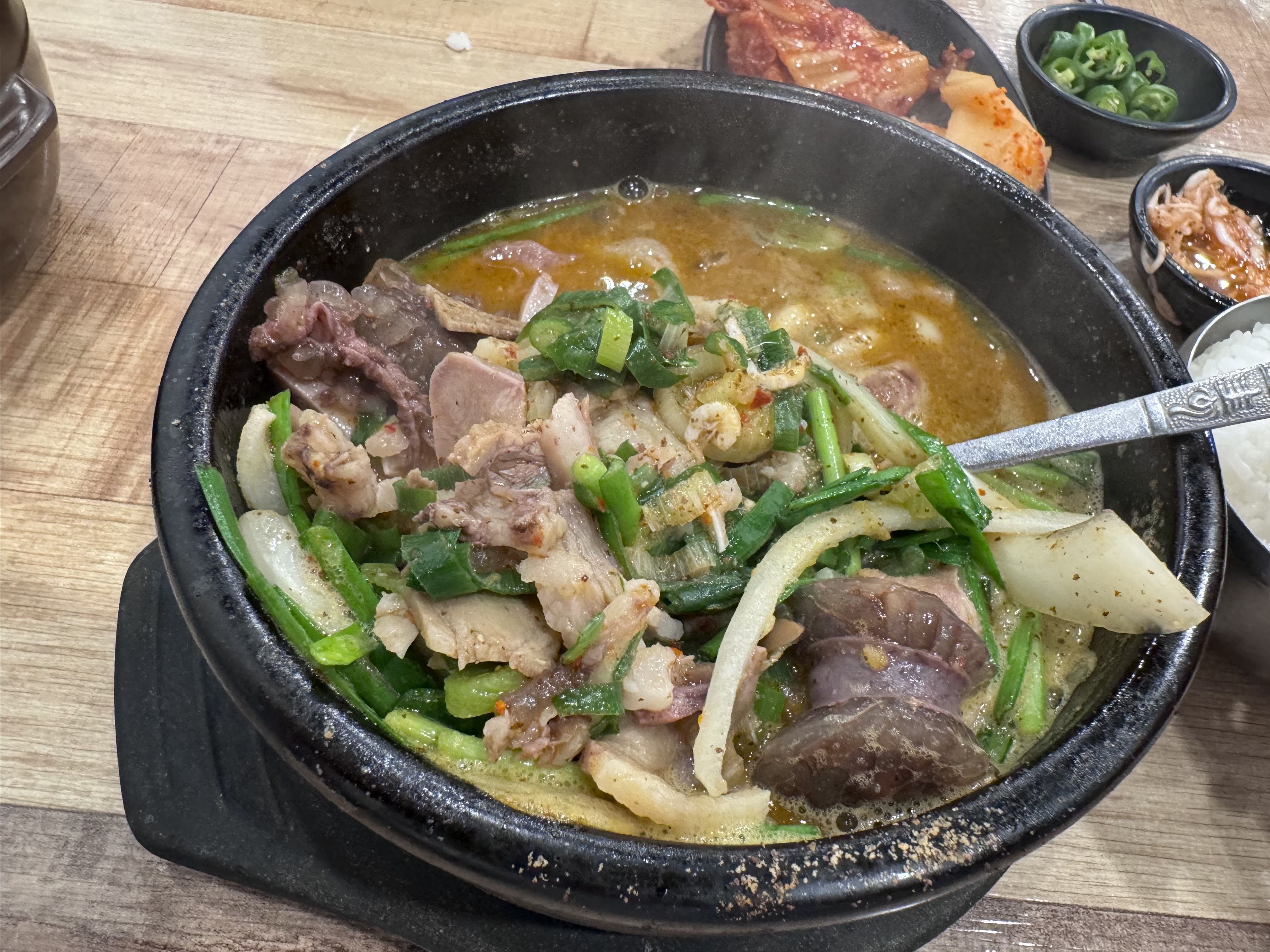 근데 조부자매운순대가 인기 있는 이유가 있었다. 나의 경우에도 여태까지 세 번은 방문한 것 같은데, 일단 가격은 순대국 10,000원이다. 저렴하다고는 못 느끼실 것이다. 가격만 본다면. 근데 이게 양이 상당하다. 안에 고기가 듬뿍 들어있고 순대 퀄리티도 나쁘지 않다. 그리고 맵기 조절이 다양하게 가능하다. 이 맵기 조절만 다섯 가지 방식이다. 나의 경우 항상 덜 매운맛만 먹는 편인데 이 정도가 딱 적당히 물리는 맛없이 감칠맛을 살려줘서 괜찮다. 그리고 사이드로 순대나 곱창, 수육 같은 것이 있는데 저번에 수육을 먹어보려다가 오후에 삶는다고 하셔서 재료가 없다고 못 먹었다. 이렇게 순대국이 훌륭하게 나오는 곳은 또 수육도 기대가 되는데. 아마 다음 춘천 여행 때 먹어볼 수 있지 않을까 싶다. 춘천에서 가볍게 술 한잔하고 싶으시다면 여기 강력하게 추천드린다.