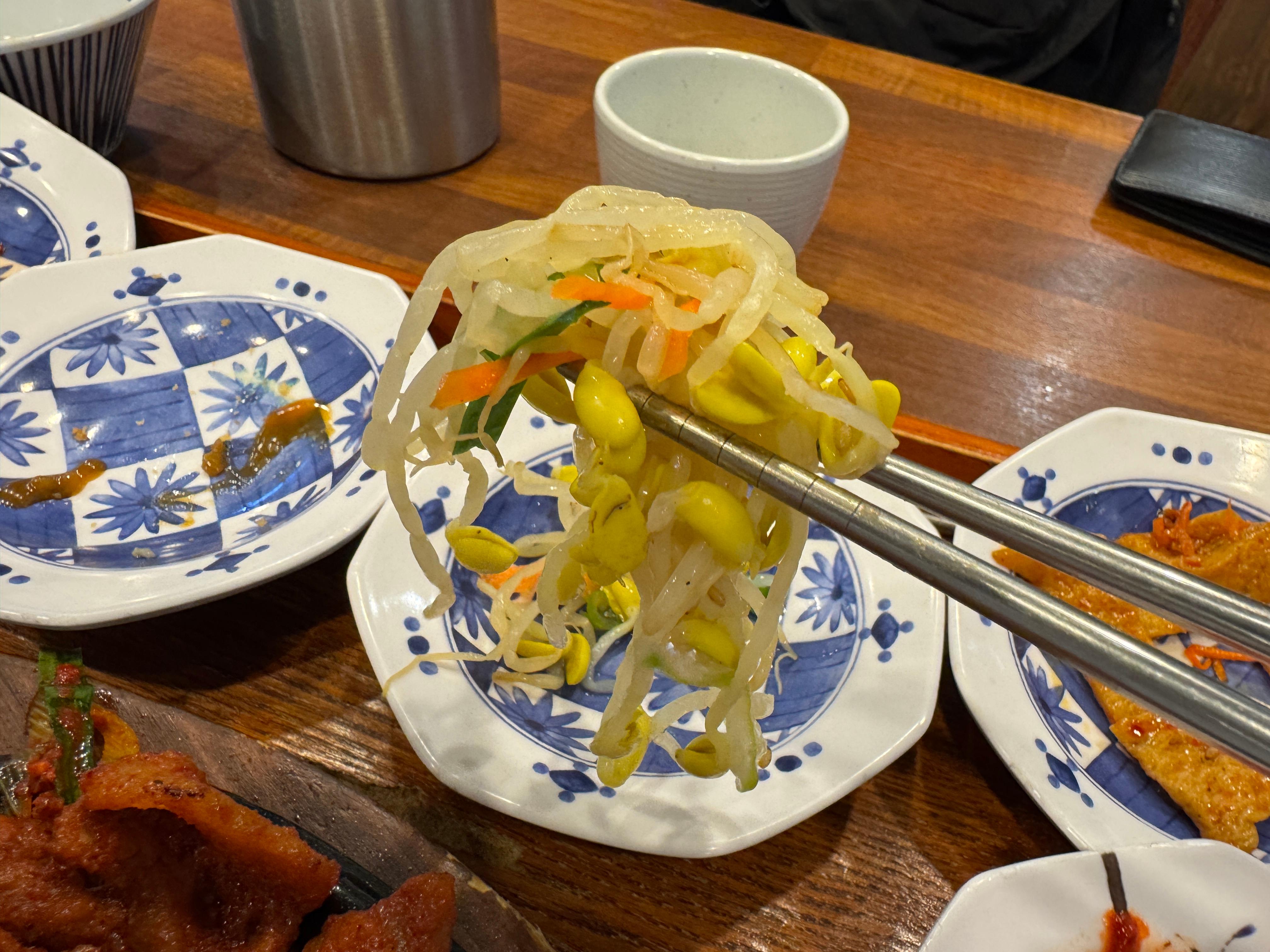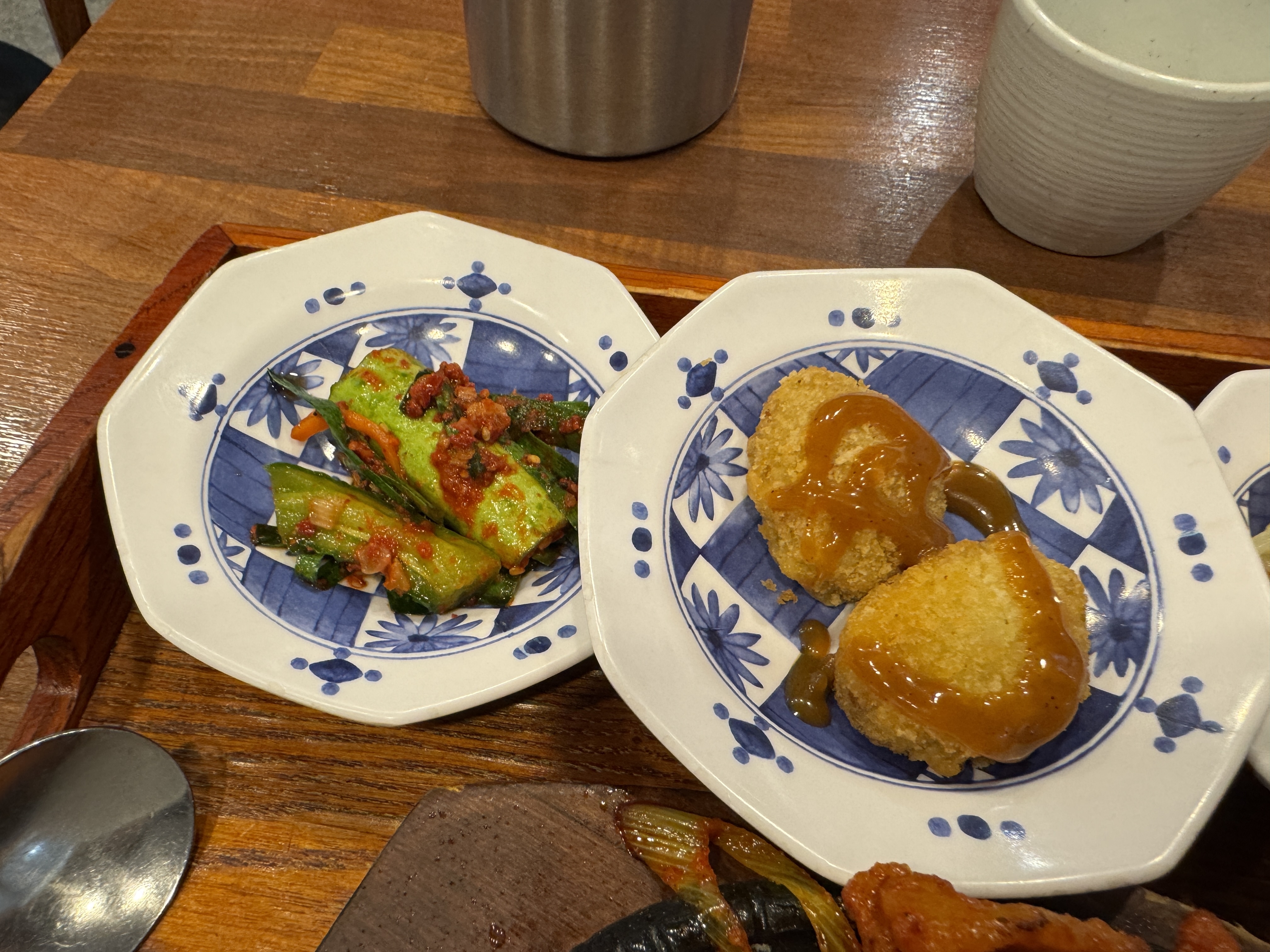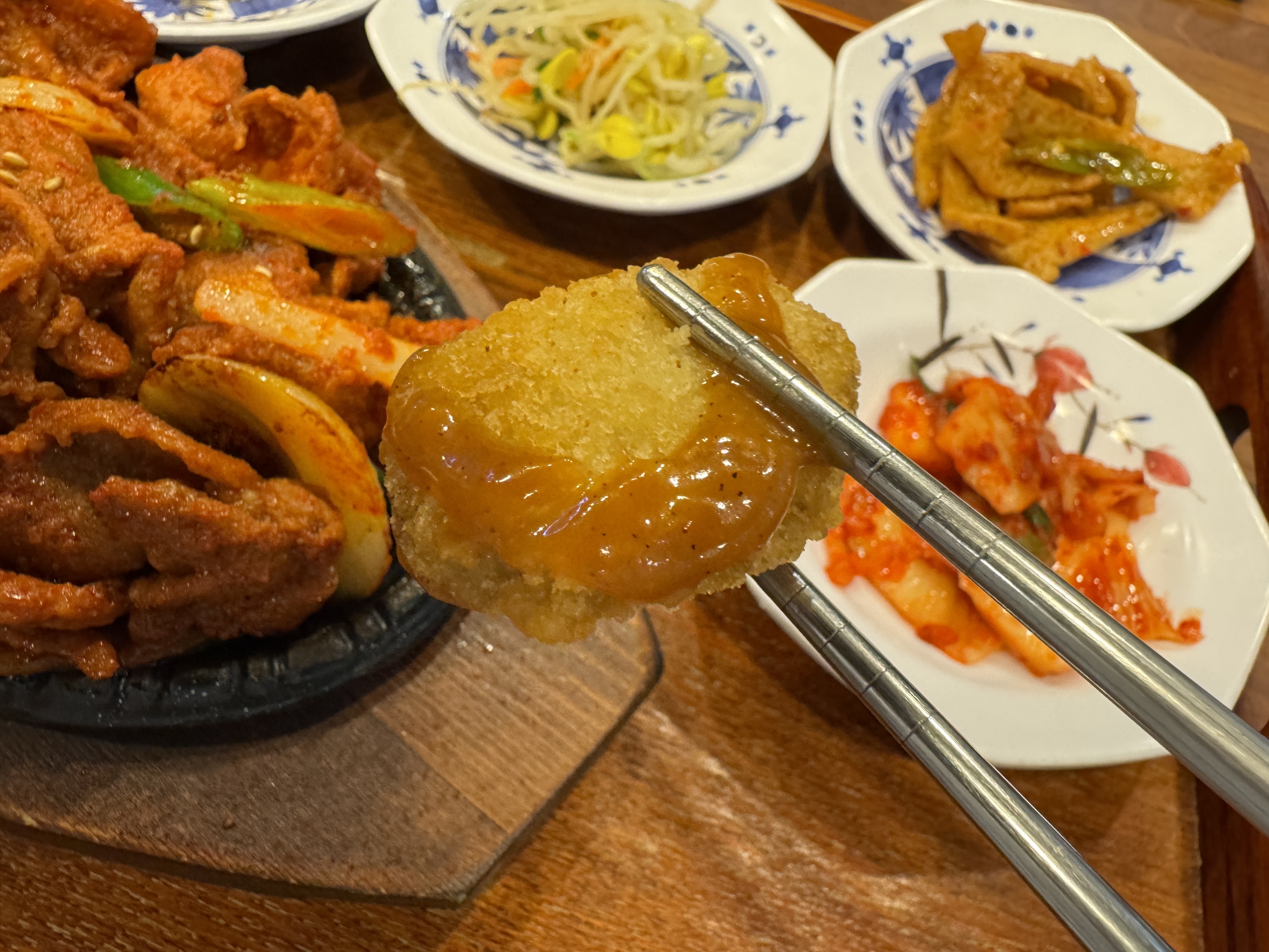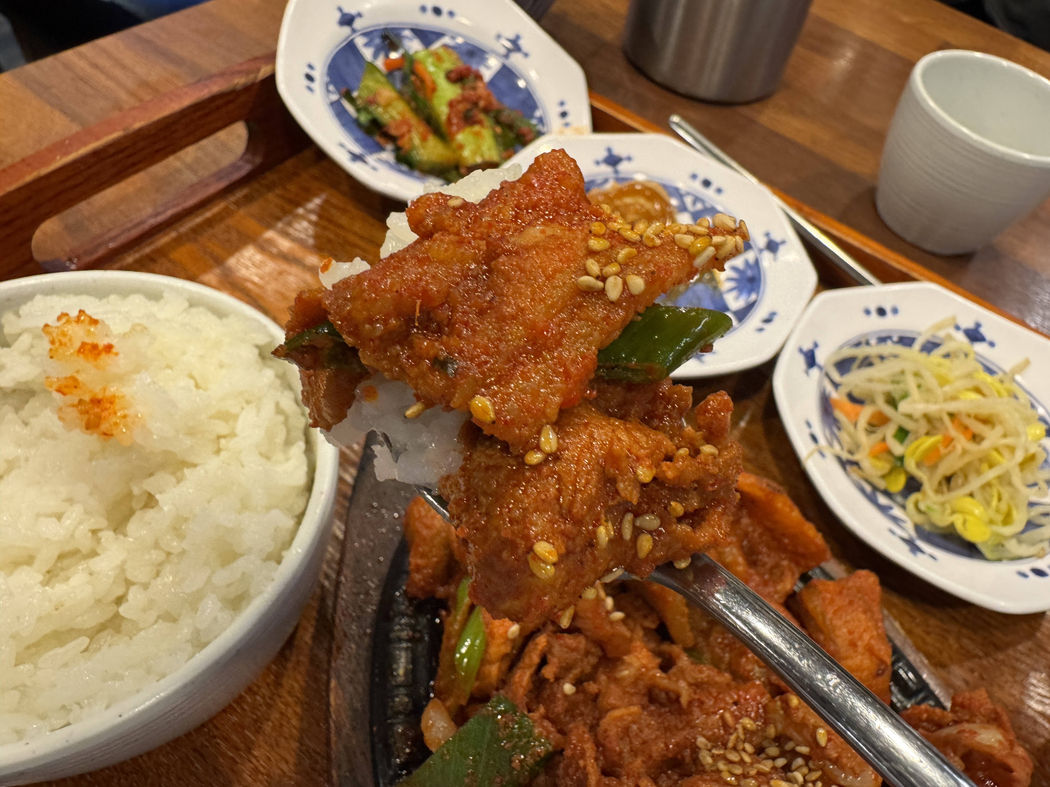 그렇게 뭘 먹을까 하다가 제육볶음을 주문했따. 사실 찌개류에서 고민을 했었는데 이날 낮에 찌개를 먹었던 것으로 기억해서 고기를 택하지 않았을까 싶다. 가격은 12,000원으로 솔직히 저렴한 편은 아니다. 원래 이런 백반 스타일의 가게들은 만원이 넘으면 안 되는데 여긴 위치가 위치인지라 넘더라. 그렇게 주문을 하고 좀 기다리니 메뉴가 나왔다. 점심시간이 아니라 그런지 미리 만들어두기보단 주문 후 바로 조리가 되는 느낌이었다. 그렇게 한상차림이 나왔고 바로 먹기 시작했다. 역시 맛있더라. 어떻게 보면 간이 센 편을 좋아하는데 여기 딱 심심하지 않게 맛이 괜찮았다. 감칠맛도 살아있고. 확실히 뭔가 딱 요리 내공이 있으시구나 싶었다. 그렇게 먹다가 갑자기 이 돼지고기가 국산인지 아닌지 궁금해졌다.