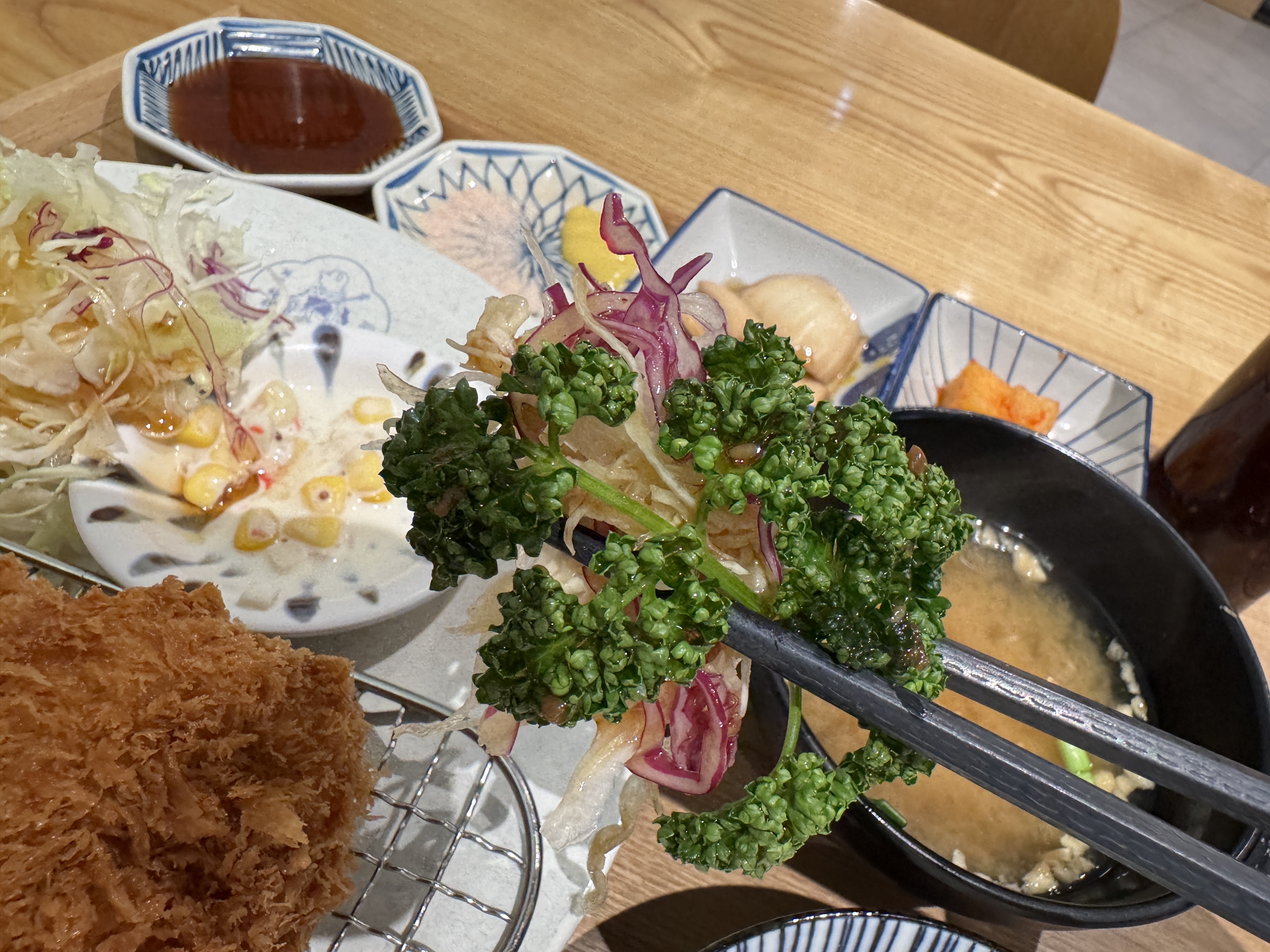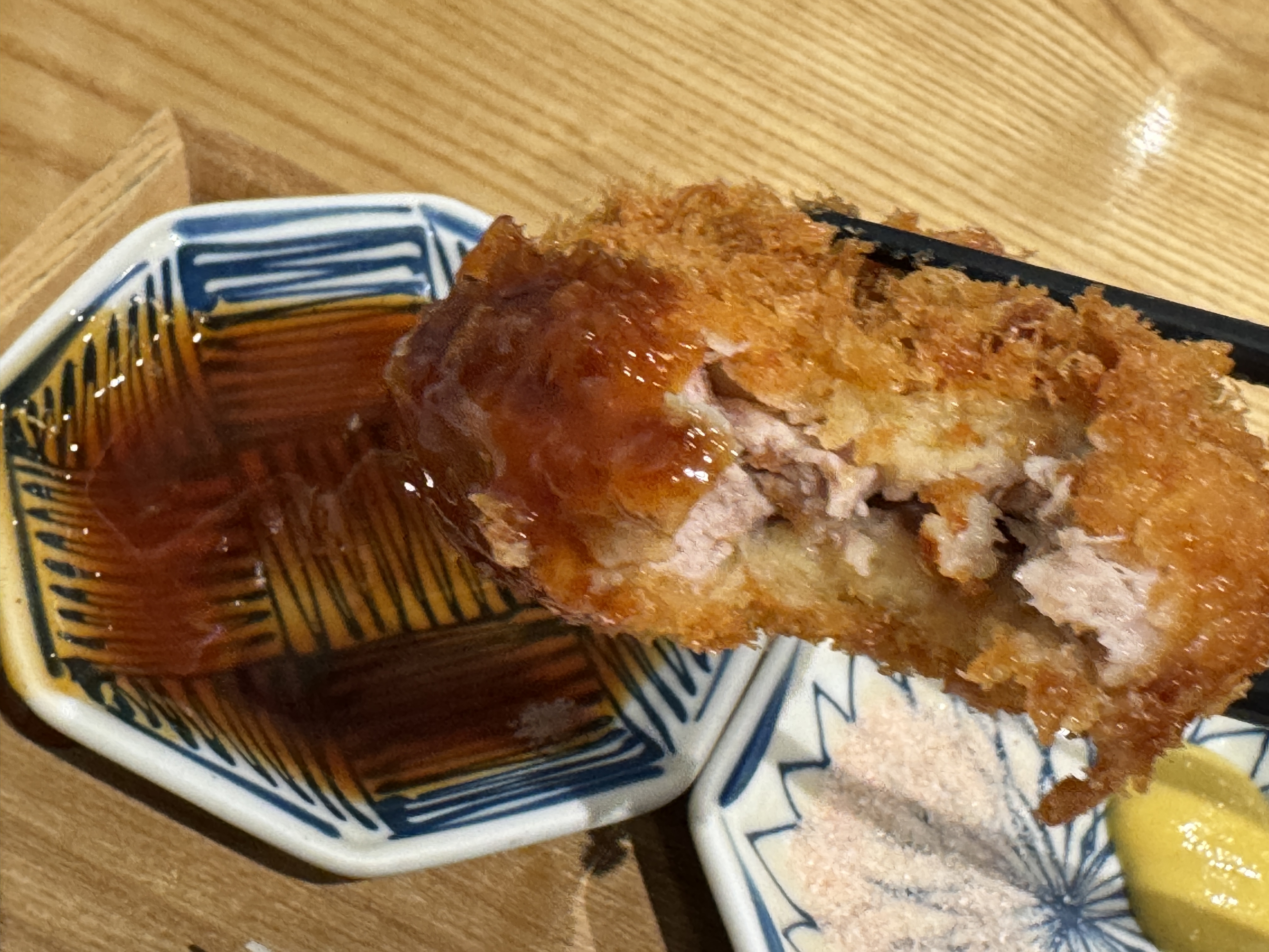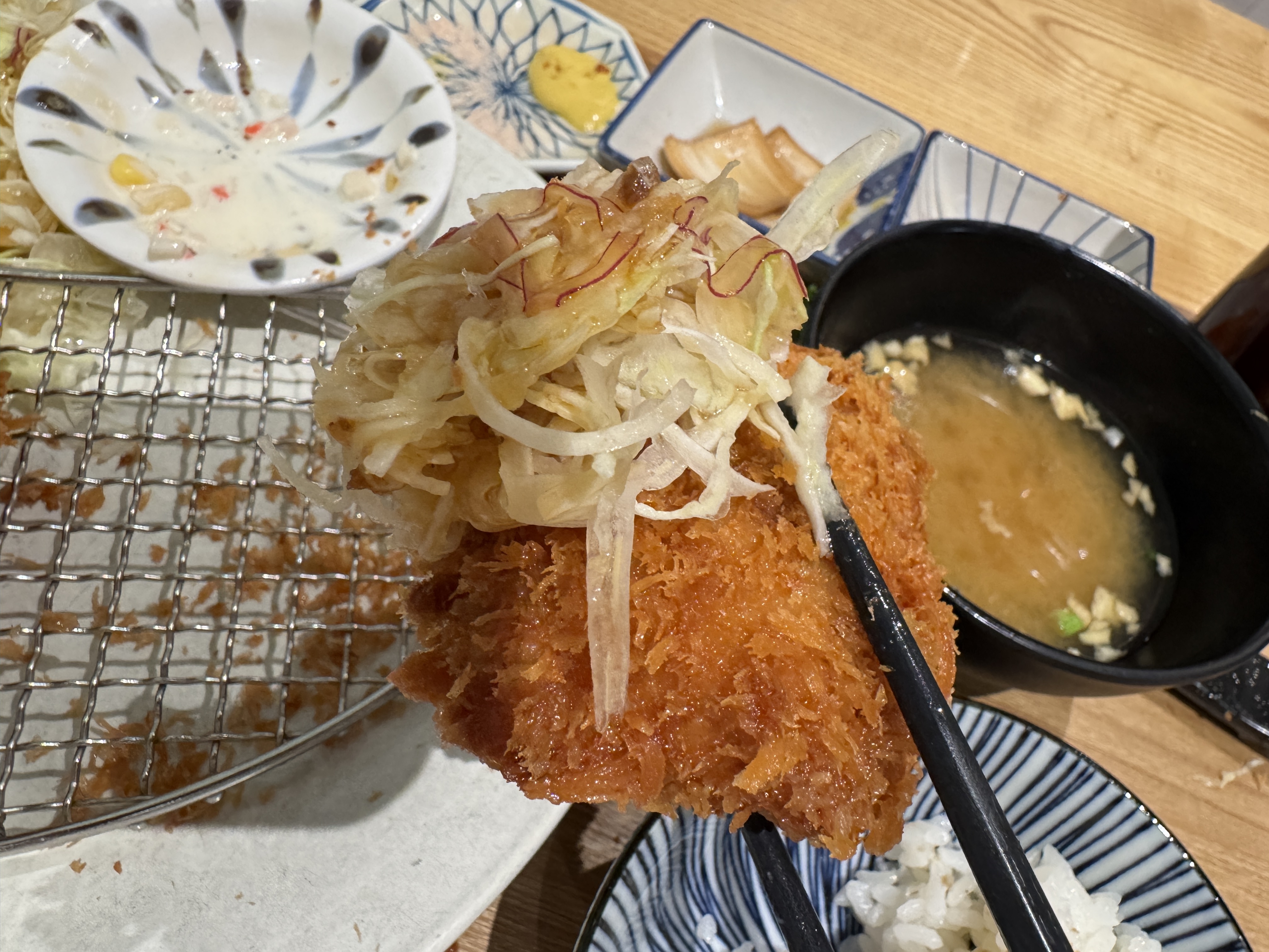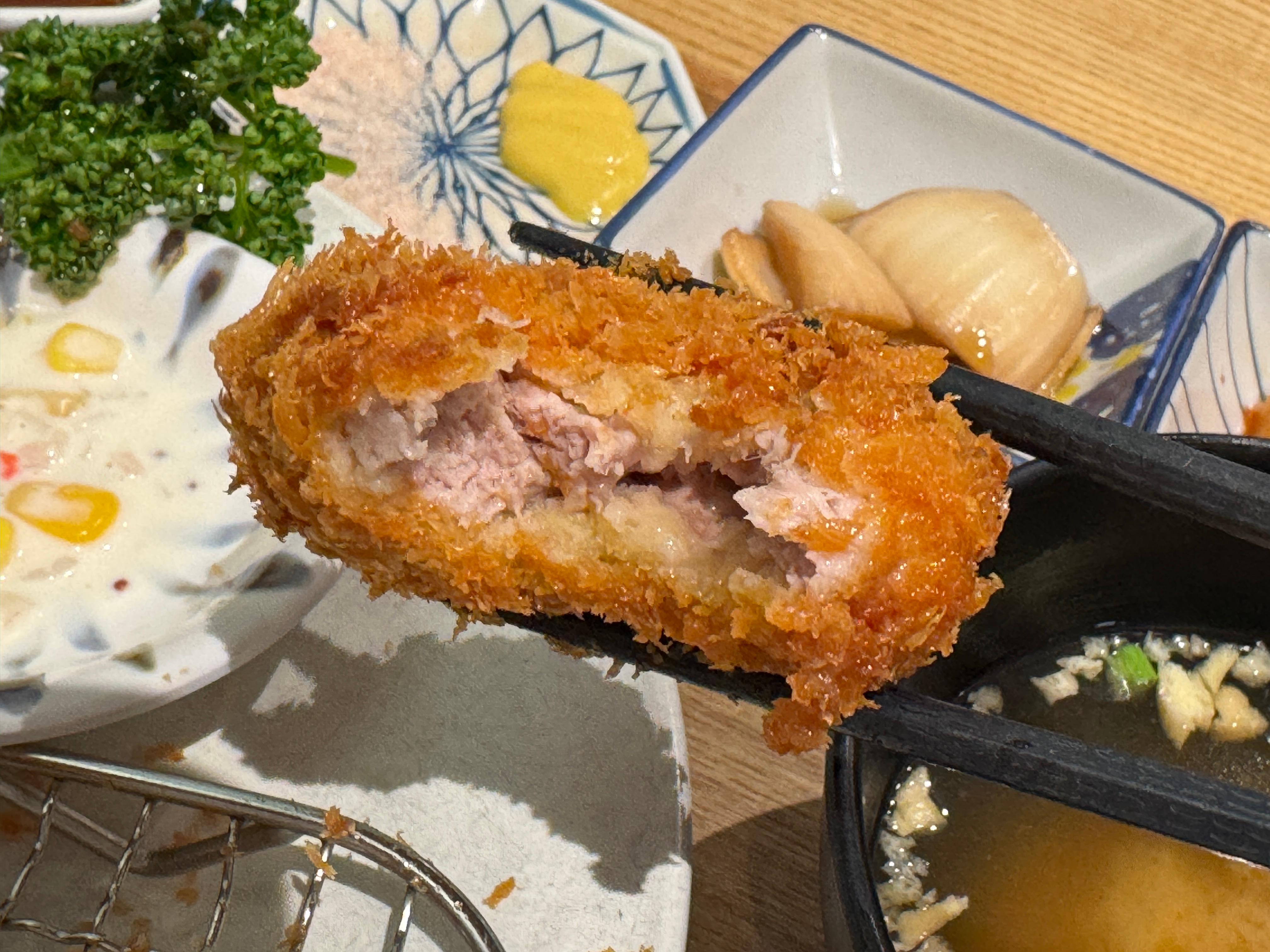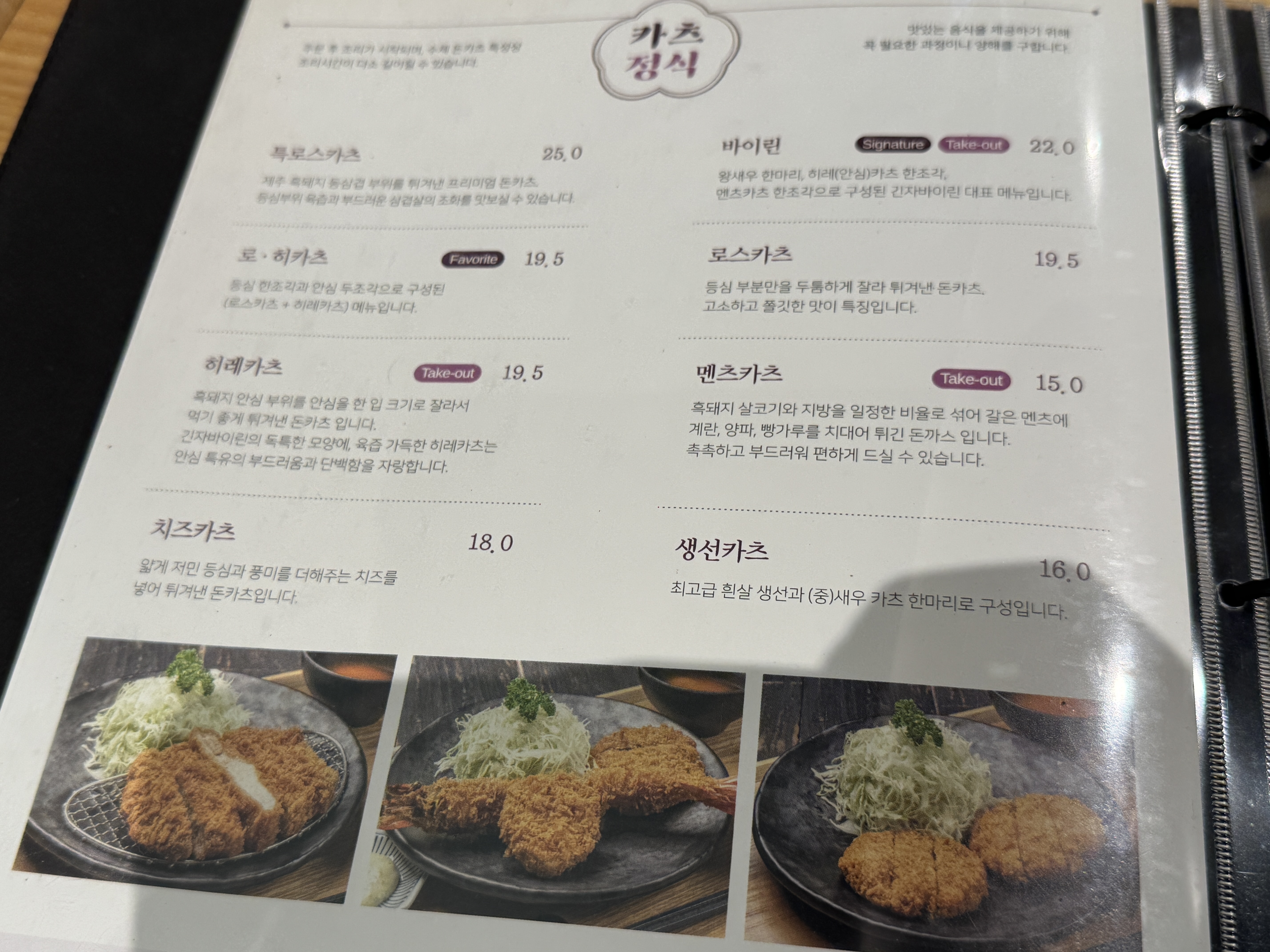가격은 1만원 중후반부터 2만원 중후반까지로 개인적으로 저렴하다 말할 순 없지만 이런 백화점에 입점한 가게 기준으로는 딱 적정하다 싶었다. 무엇보다 1만원 중반대의 메뉴가 있어서 나름 합격이었다. 백화점 위층에 있는 식당가 같은 곳 가면 기본 2만원이 넘어가는데 그에 비하면 괜찮은 구성이라 생각했다. 그렇게 적정한 메뉴를 주문했다. 원래 안심과 등심 중에 고르는 편인데 개인적으로 맛은 등심이 더 맛있다 생각하지만 소화 측면에서 안심이 더 부드럽게 느껴져서 항상 둘 중에 고민하다가 주문을 하는 편이다. 속이 좀 헤비하면 안심으로 주문하고 맛있게 먹고 싶으면 등심으로 주문하고 뭐 그런 것 같다. 그리고 만약 둘이서 왔으면 가츠샌드 같은 것 추가로 주문해서 먹었을 것 같은데 혼자였기 때문에 딱 이 메뉴 하나만 주문해서 먹었다.