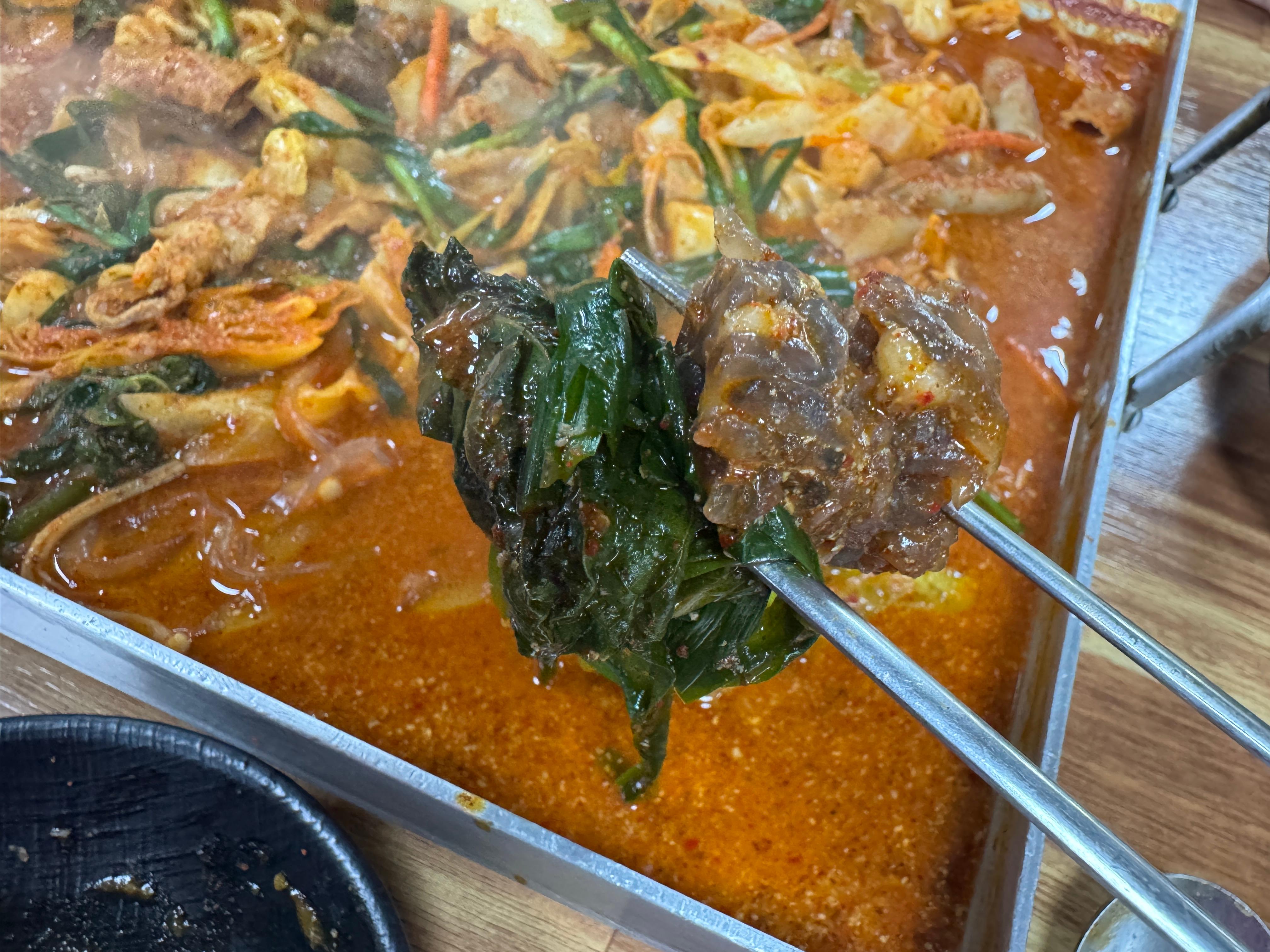 근데 아니었다. 그냥 딱 들어서면 한층 안에 가게들이 구역마다 간판만 다르게 하고 가게들이 쭉 있다. 이걸 뭐라고 해야 하지. 어떤 표현이 있을지도 모르겠는데 설명을 하기가 힘들다. 그러니까 그냥 수산시장 가면 생선 파는 가게들이 구역마다 있듯이 그런 느낌으로 구역마다 순대 가게들이 있다. 그래서 꼭 이 순대곱창볶음을 여기서만 먹을 수 있는 것은 아니다. 그래서 내가 앞서 꼭 여기 전라도집을 안 와도 되는데, 여긴 와보면 좋겠다 말한 것이다. 나의 경우 처음부터 여길 올 생각을 하고 왔는데 여기에서 이 가게가 제일 유명한 것은 아니었다. 물론 내가 마지막 테이블을 차지하고 다음 손님은 웨이팅을 하긴 했는데 근처 다른 순대곱창볶음 가게들도 장사가 꽤 잘 됐다.