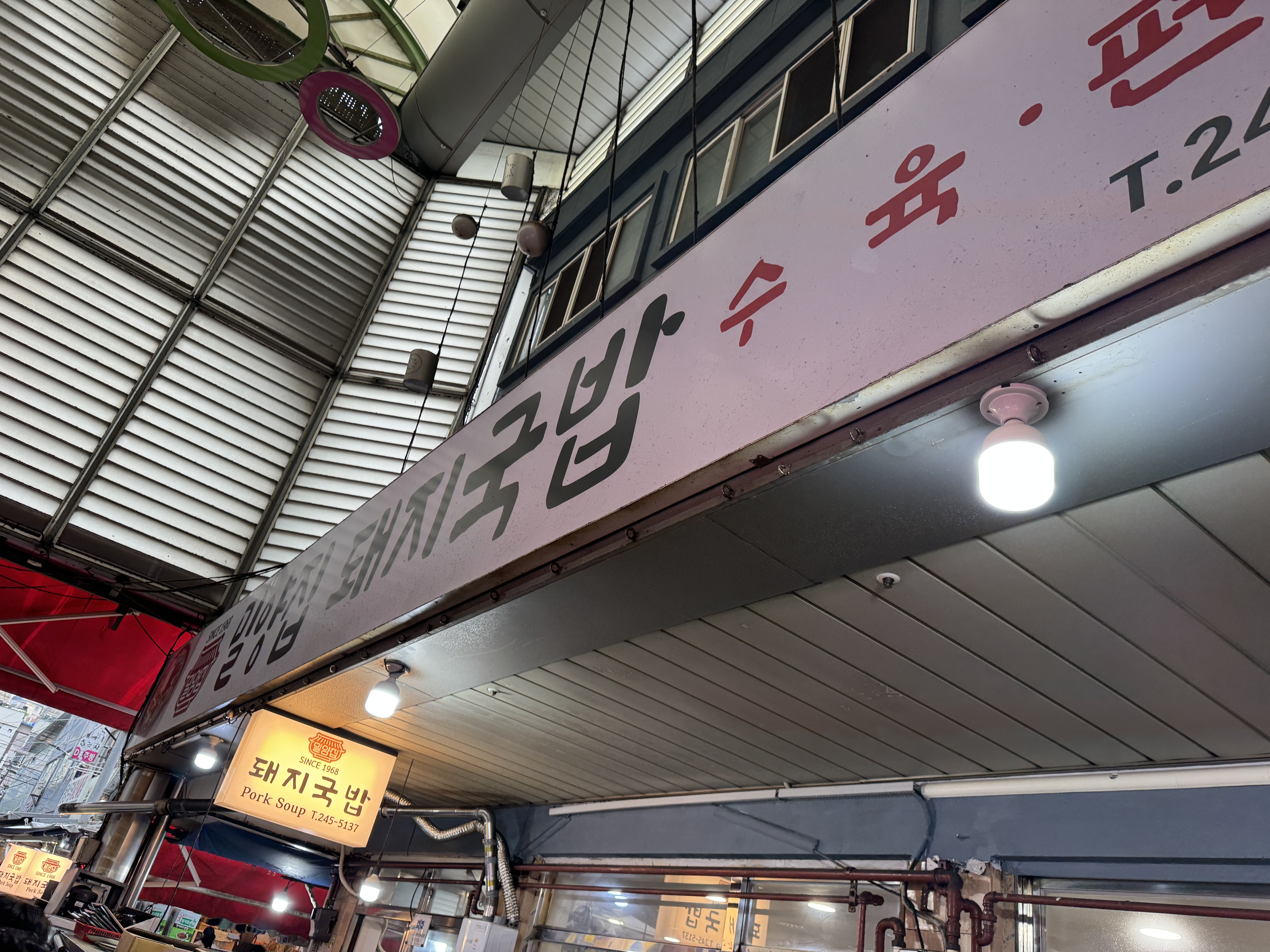이 가게의 경우 사실 올 생각은 없었다. 그러니까 여기 깡통시장 올 생각은 있었다. 여행을 가면 시장투어는 꼭 한 번은 하는 편이기 때문에 이번엔 여길 택했다. 자갈치 시장의 경우 이 근방이라서 한 번 가볼까 싶었다. 자갈치 시장은 20대 초반에 부산 여행을 왔을 때 그때 딱 한 번 가보고 그 뒤론 안 가봤다. 그래서 오랜만에 옛 추억 살리러 한 번 가보고 싶었다. 근데 발걸음이 안 떨어졌고, 여기 깡통시장만 둘러봐도 괜찮겠다 싶었다. 뭘 먹을지 정하고 온 것은 아니고 식사 때가 되긴 했으니까 둘러보다가 꽂히는 곳 있으면 가자 싶었다. 그러다 사람들이 줄 서 있는 돼지국밥집을 보게 되었고 그냥 먹어보자 싶었다. 대기가 있었고 한 30분 정도 기다렸다가 안으로 들어간 것 같다. 기다리는 동안 검색도 해보고 주변을 둘러보기도 했는데 여기 풍자 또간집에서 돼지국밥 1등 했다는 그런 가게였다.