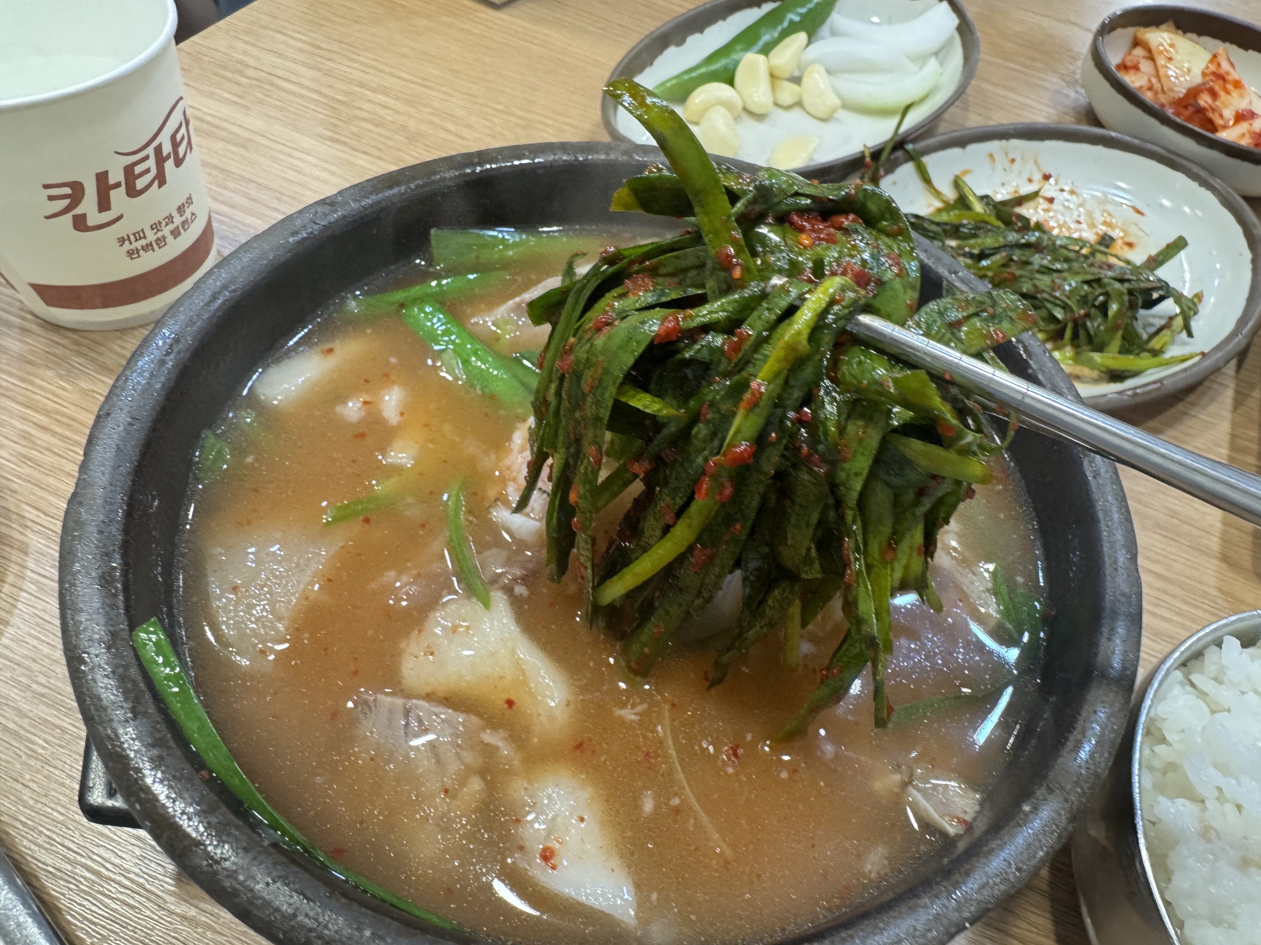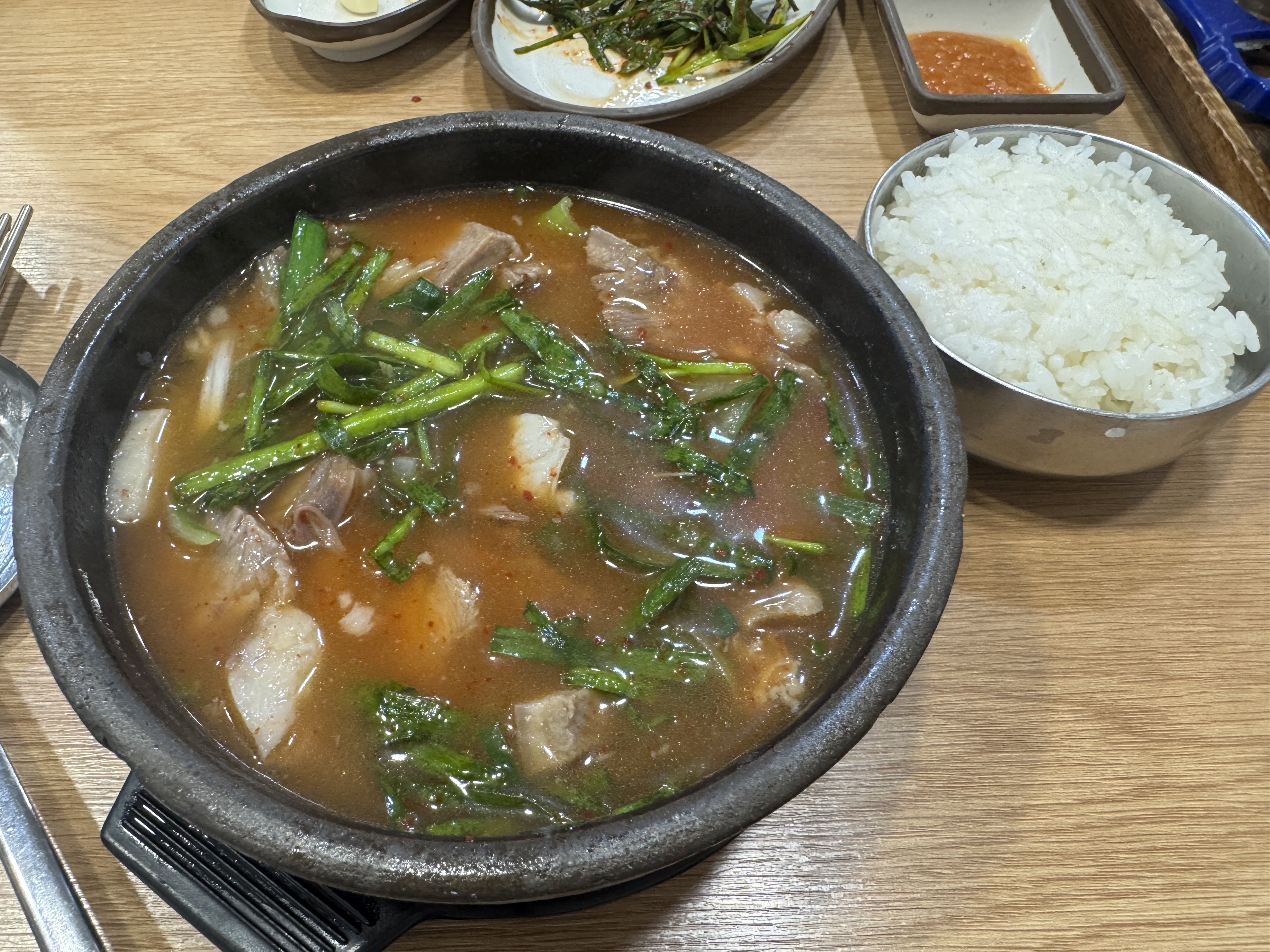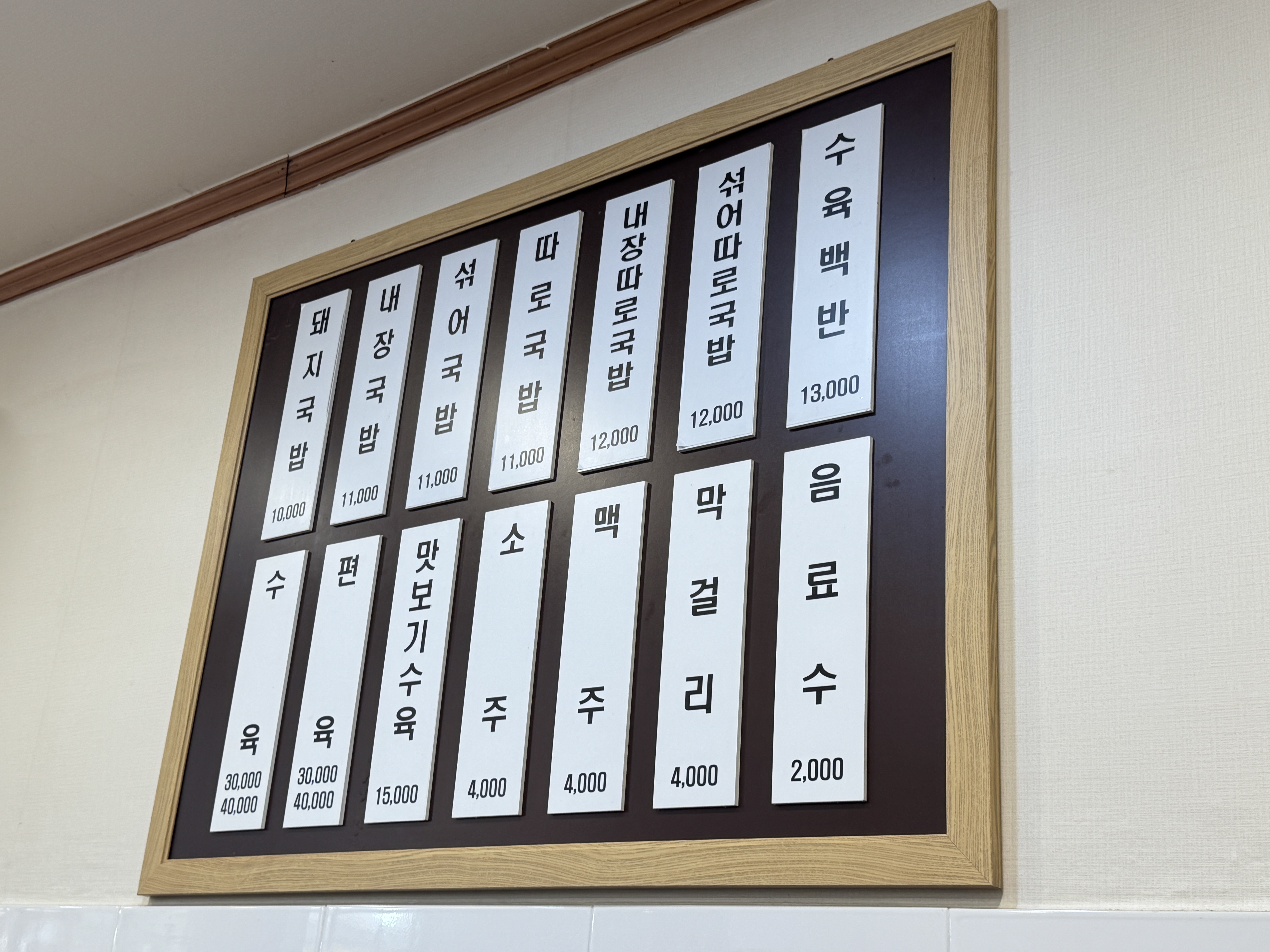 그래서 나름 꿀팁이 두명이서 갔을 때 순대국 같은 것 특을 하나 주문하고 수육을 시키면 내 기준 딱 맞더라. 보통은 아쉬울 수 있으니 특을 시켜야 한다. 나의 경우 간 조절이나 그런 것에 그렇게 민감한 편은 아니기 때문에 상대방에게 맞추고 그냥 덜어서 먹는데, 친구끼리는 그냥 순대국 두 개를 시켜 먹는 것이 편하긴 하겠다. 그리고 또 이게 잘 먹는 사람 옆에 있으면 그만큼 보조를 맞춰서 먹게 되긴 한다. 그런데 순대국 하나 주문하고 수육 시킬 경우 사장님에게 미리 여쭤보고 주문하는 것이 낫겠다. 사실 가격적인 측면이나 그런 부분에서 사장님이 싫어할 포인트는 없지만 또 혹시 모르니까. 아무튼 여기선 그럴 일은 없었고 돼지국밥 딱 하나만 주문하고 자리에 앉았다.