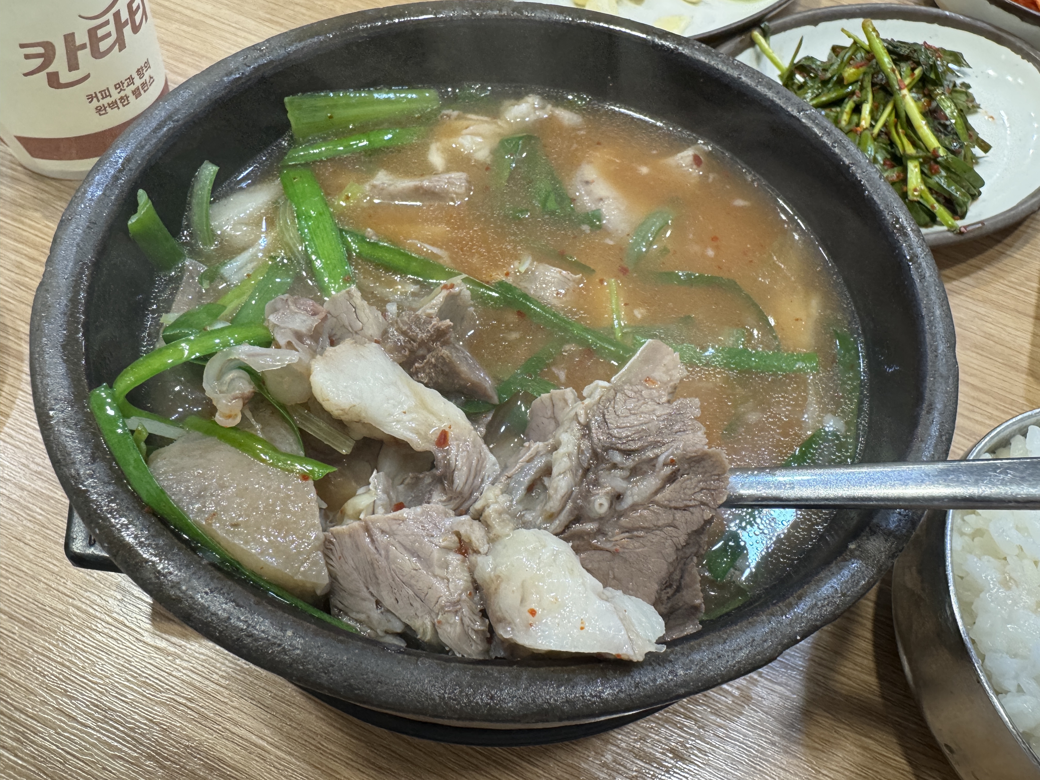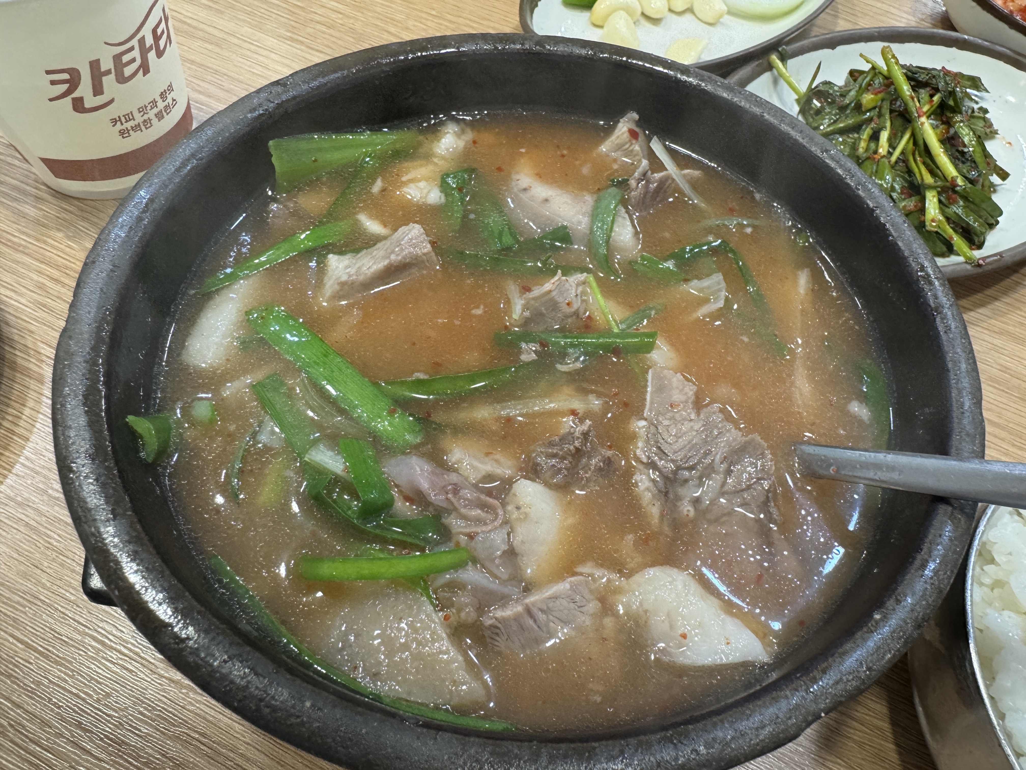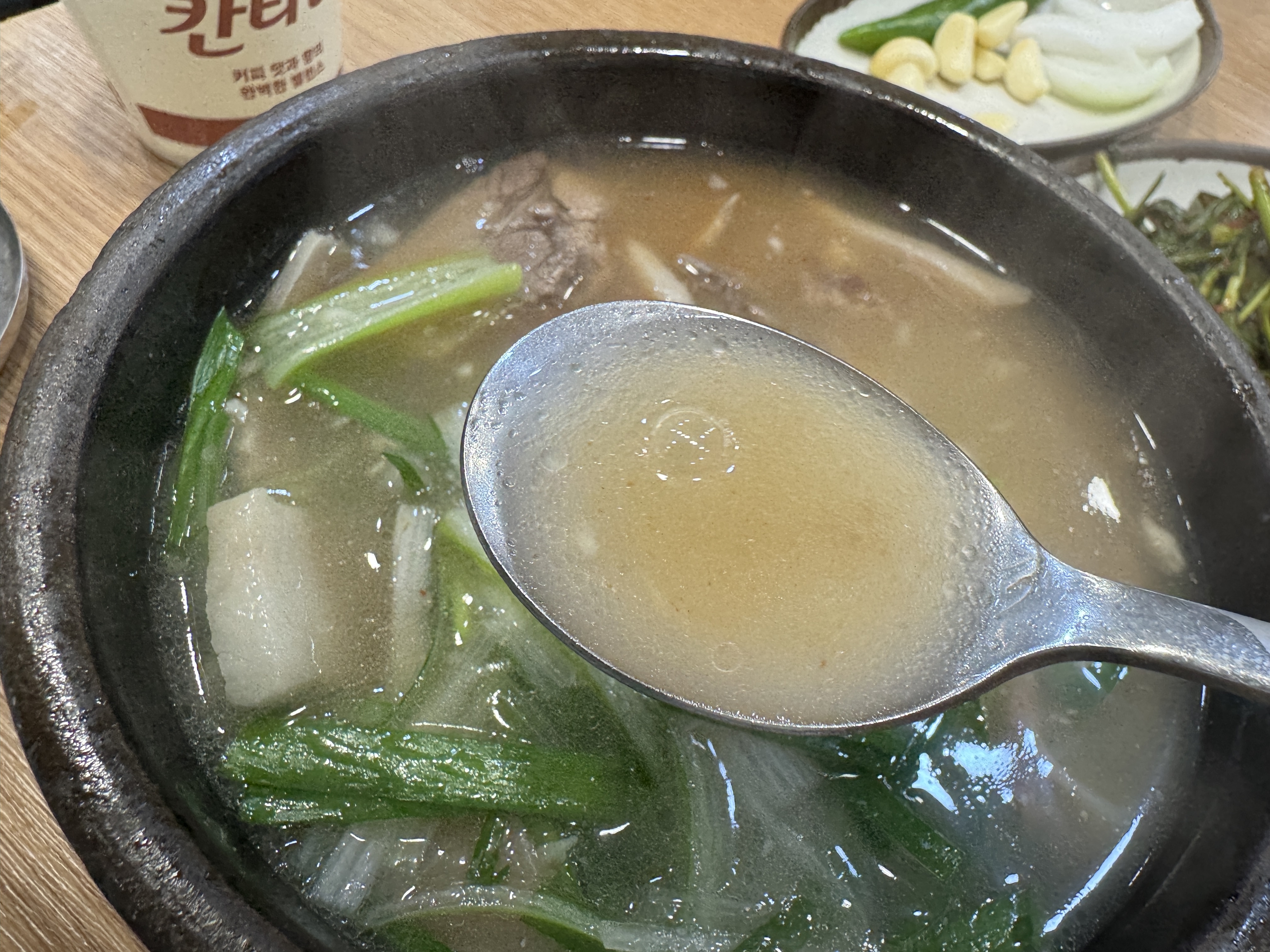 그래서 나름 꿀팁이 두명이서 갔을 때 순대국 같은 것 특을 하나 주문하고 수육을 시키면 내 기준 딱 맞더라. 보통은 아쉬울 수 있으니 특을 시켜야 한다. 나의 경우 간 조절이나 그런 것에 그렇게 민감한 편은 아니기 때문에 상대방에게 맞추고 그냥 덜어서 먹는데, 친구끼리는 그냥 순대국 두 개를 시켜 먹는 것이 편하긴 하겠다. 그리고 또 이게 잘 먹는 사람 옆에 있으면 그만큼 보조를 맞춰서 먹게 되긴 한다. 그런데 순대국 하나 주문하고 수육 시킬 경우 사장님에게 미리 여쭤보고 주문하는 것이 낫겠다. 사실 가격적인 측면이나 그런 부분에서 사장님이 싫어할 포인트는 없지만 또 혹시 모르니까. 아무튼 여기선 그럴 일은 없었고 돼지국밥 딱 하나만 주문하고 자리에 앉았다.